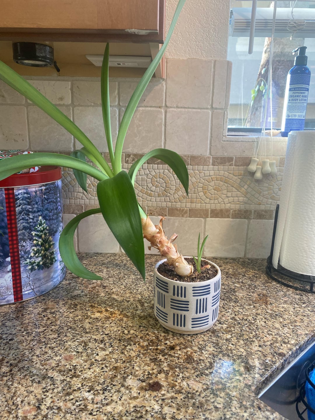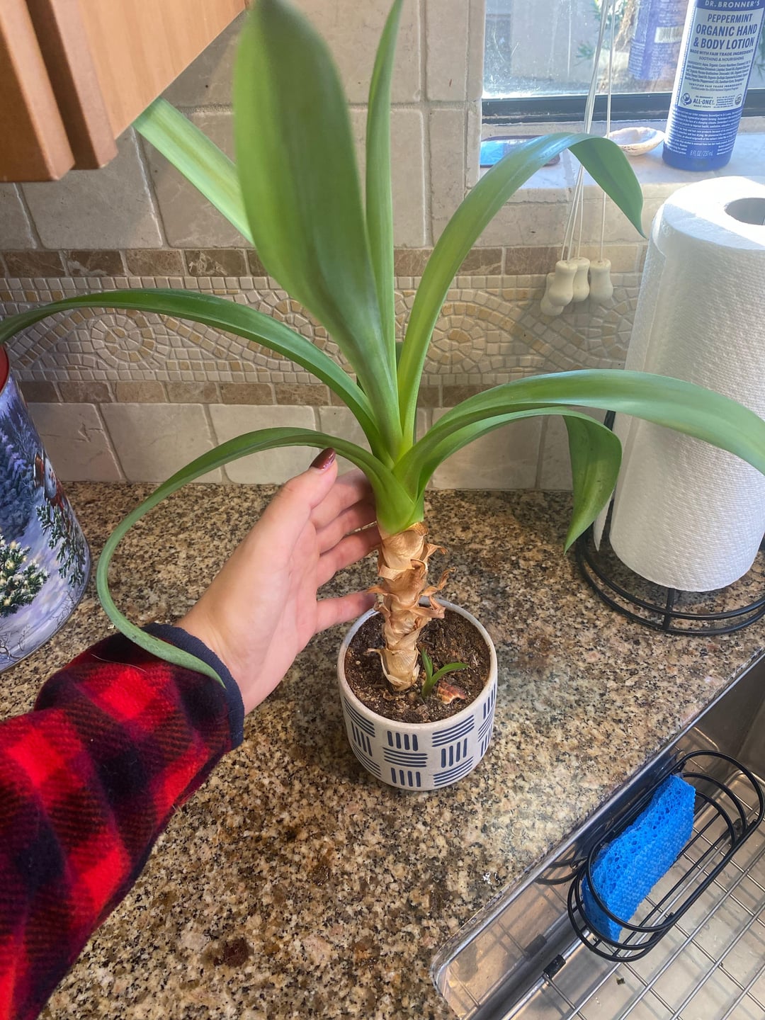 Do I just chop it and start over? Re pot? I don’t know :/ it seems so healthy otherwise with water and sunlight. Thanks! by vascainthedesert Plant ClinicWhat's wrong with my plant? 3 Comments KitKurama 21 hours ago Repot it, a tiny bit deeper so it keeps upright. I’d upsize the pot slightly, if only for balance. No_Region3253 21 hours ago Looks like a crinum Lilly It will take well if the bulb is straightened out and lowered on the next repot, occasionally mine will tip also and they sort out in a month or two. These get top heavy as they mature so a larger container will be needed. Mine are in 5 gal containers InspiringGecko 20 hours ago Repot and give it a stake.