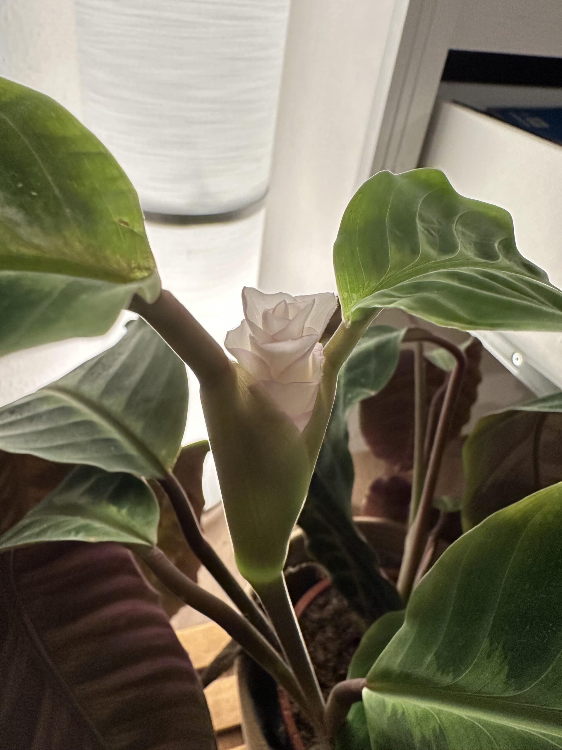 I just checked my plants and didn’t think much of it but as I look to the tiniest leaf (yes it needs more light) I see a flower? Is this a flower? How? Why? I didn’t even know calatheas can flower. Kind of exciting though.