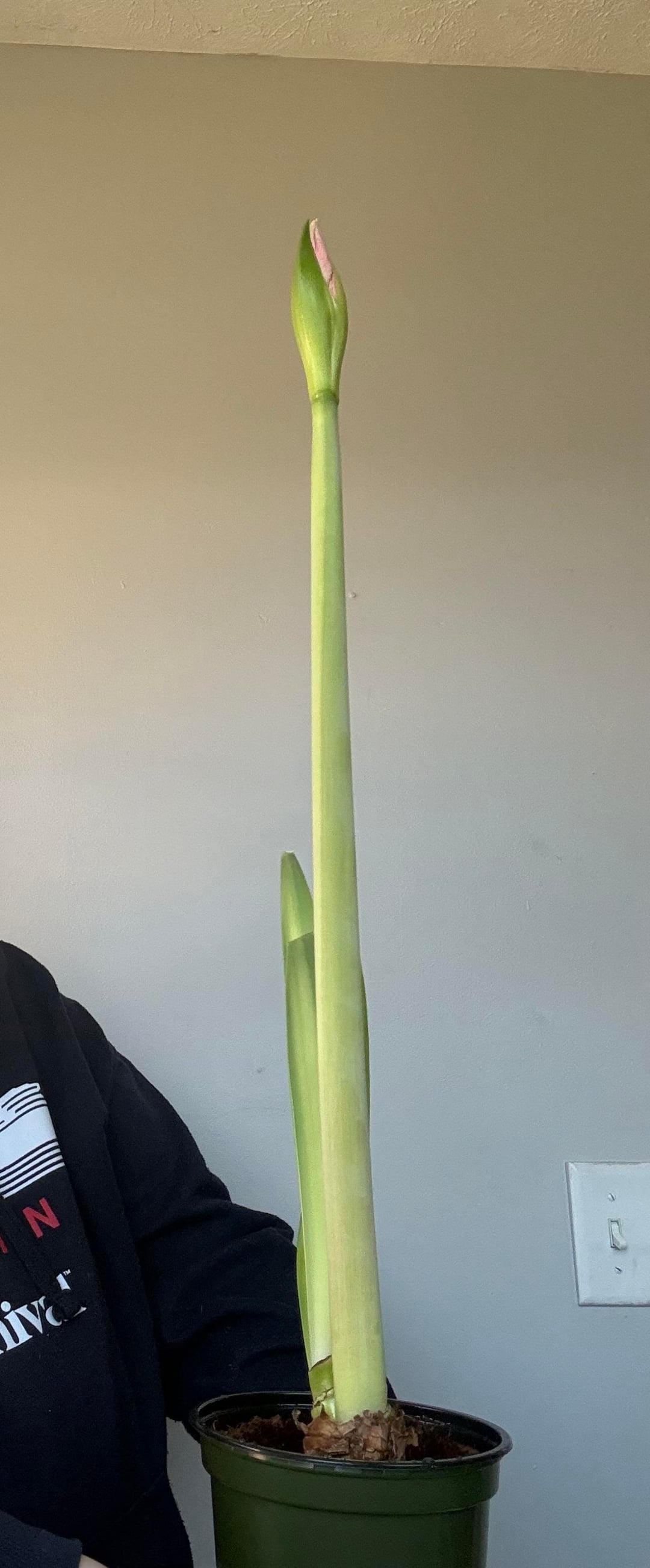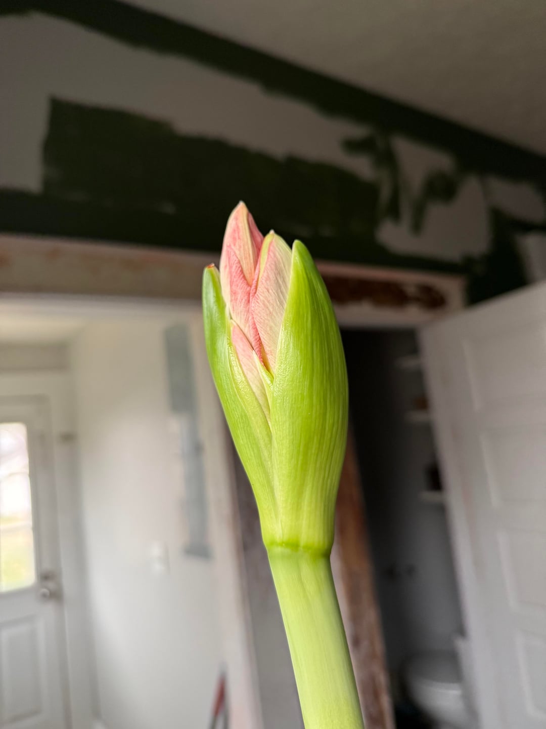 Earlier this month I posted about my Hippeastrum and some concerns I was having, turns out I was doing everything right because she officially began to bloom yesterday! Just wanted to say thanks for all of the help and advice I received. I’ve always wanted to grow plants but was always too afraid I’d kill them all. I feel very accomplished and can’t wait to grow more! (Please ignore my walls in the 2nd pic, currently stripping and repainting my kitchen.)