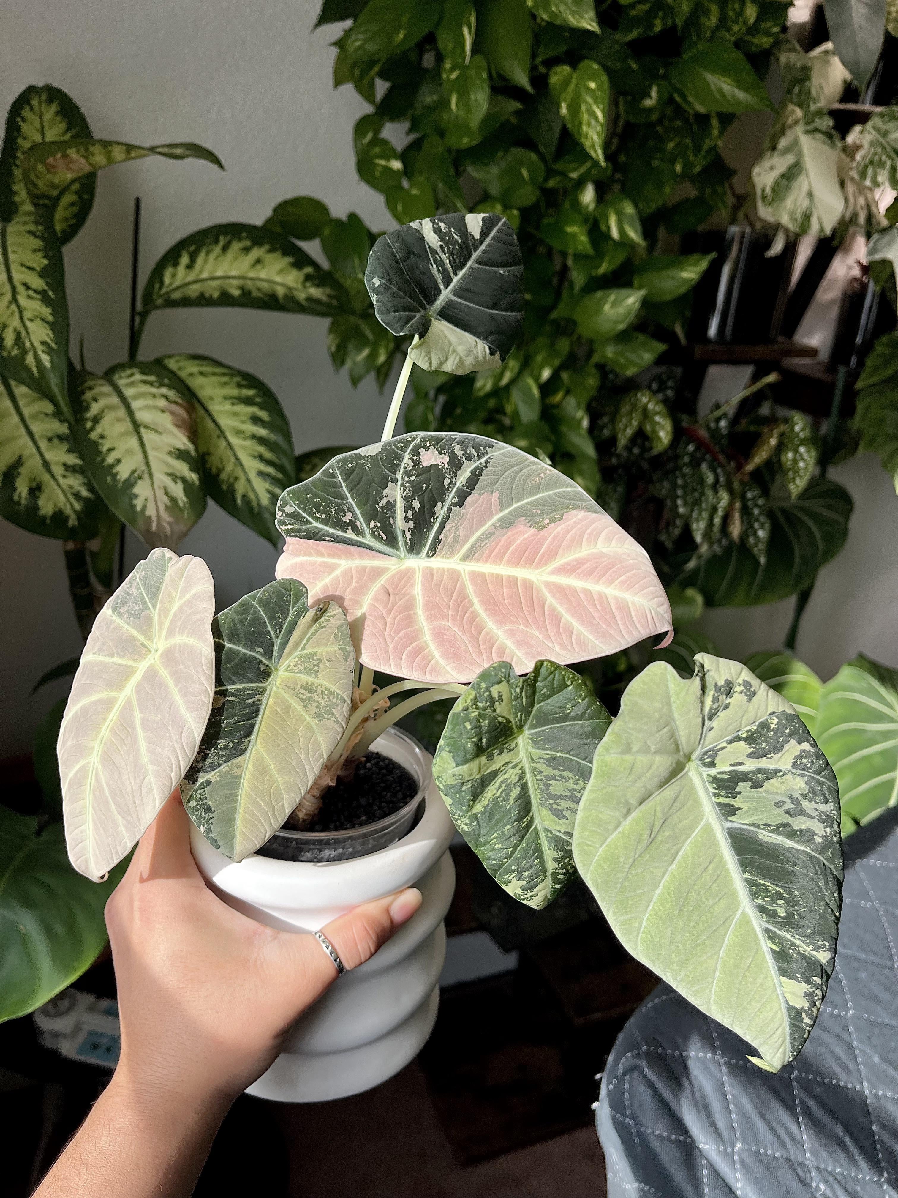 My variegated Black Velvet is doing so well 🥰 Look at all those shades ✨ I’d love to see any Black Velvets in your collection or your current favorite plant vvv by thepinkminxx alocasia Comments are closed.