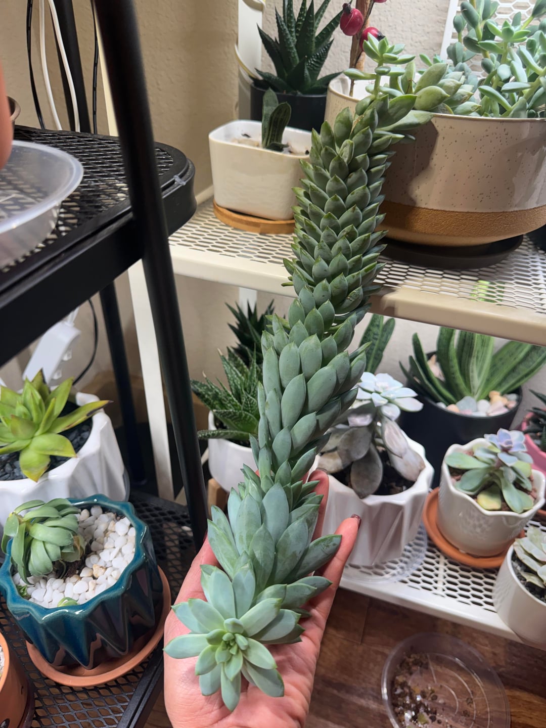 I’ve had this sedeveria blue elf for about 3.5 years. It’s been repotted 3 times with the same 2 pot mates (sedum treleasei gave up this summer).