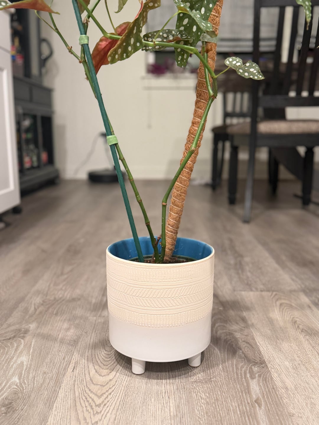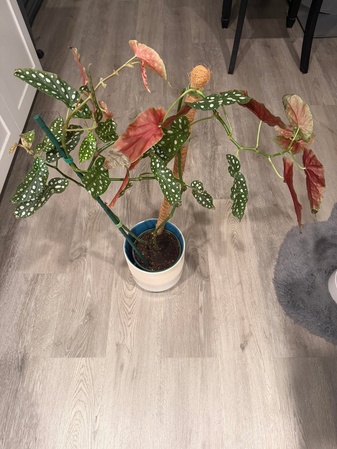 In addition to its legginess, almost all of the leaf tips are crispy and dying, but I haven’t had any dropped leaves in a while. The legginess seems to have always been a problem with it, even after putting it in a bigger pot.