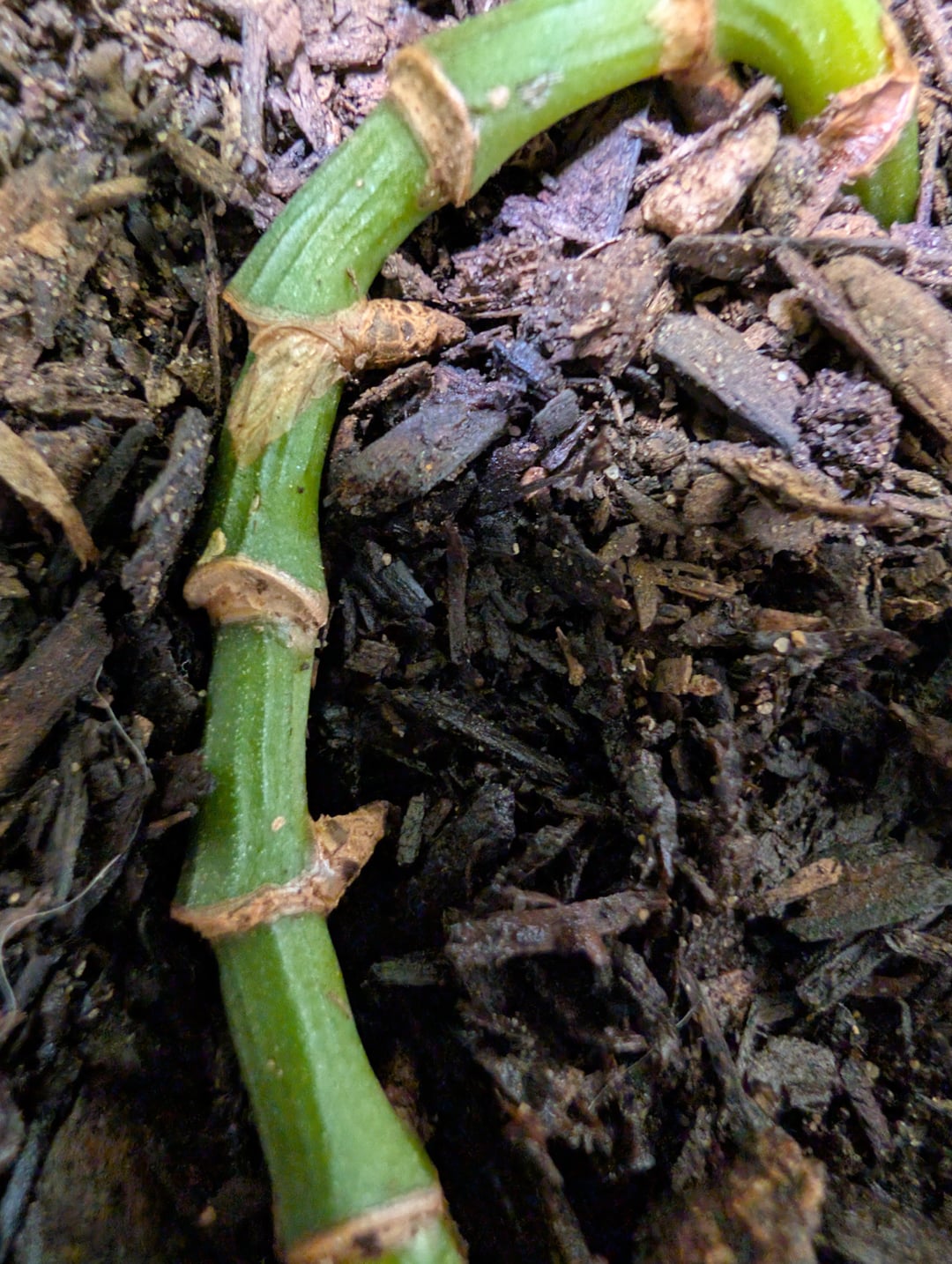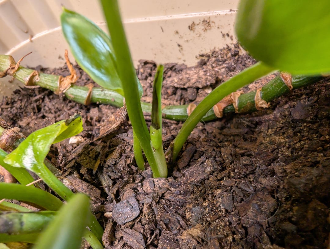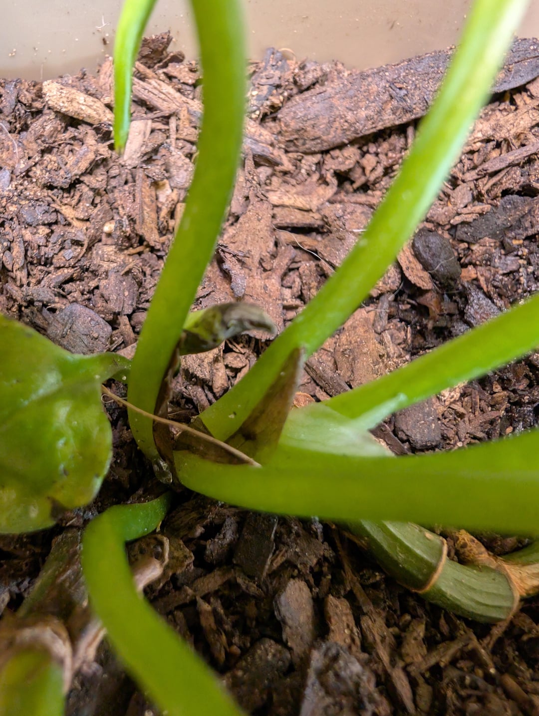 I've been following general ?aroid advice but would appreciate clarity for best-care because grief fog is difficult to think through and I would love for her to get big and healthy enough to propagate so that I can give her as potted/stable babies to my siblings in the future at some point and I'm not sure if the two plants have any differences in needs I can measure (weight over time for water loss, best depth of moisture v overall soul depth, etc is my current attempt at external decision structure/ADHD friendly care routine) because I don't want to panic water, etc through transplant shock and I'm not sure what community I should ask for future advice in if needed