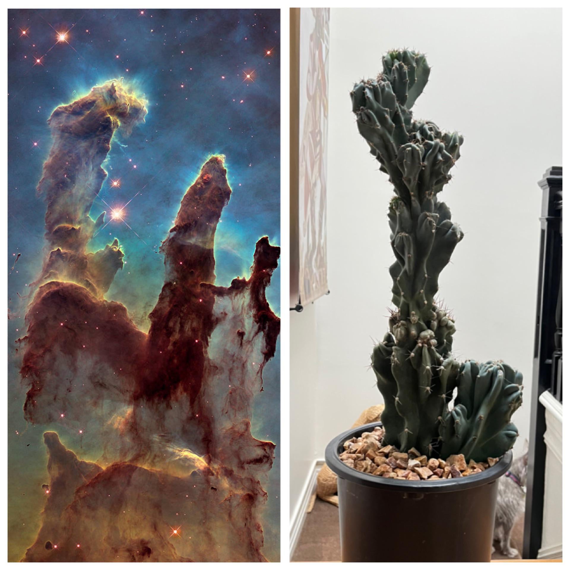 I now ask my family for cactus for Christmas, and my mother hunts for a good sized one. I like them all, of course, but the one she got this year reminded me of the Pillars of Creation. It’s magnificent. About 21” tall, can’t wait to add to my collection at home.