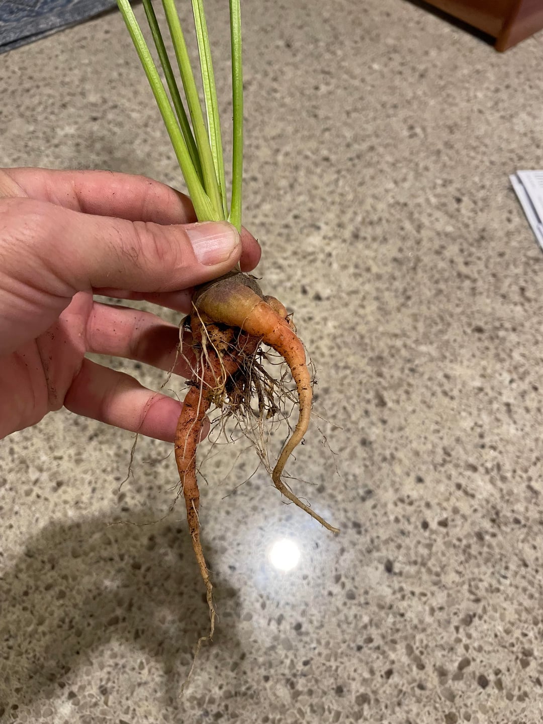 I’ve never had luck growing carrots. I grew a few this year because I got some free seeds. They ended up being about 4 inches long and they were in a raised bed with really good loose soil.