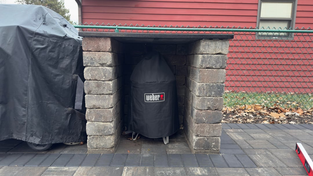 Grill wall built as part of a $40k patio renovation. One wall is visibly curved. I’m happy with the rest of the project but the grill wall seems very sloppy to me.