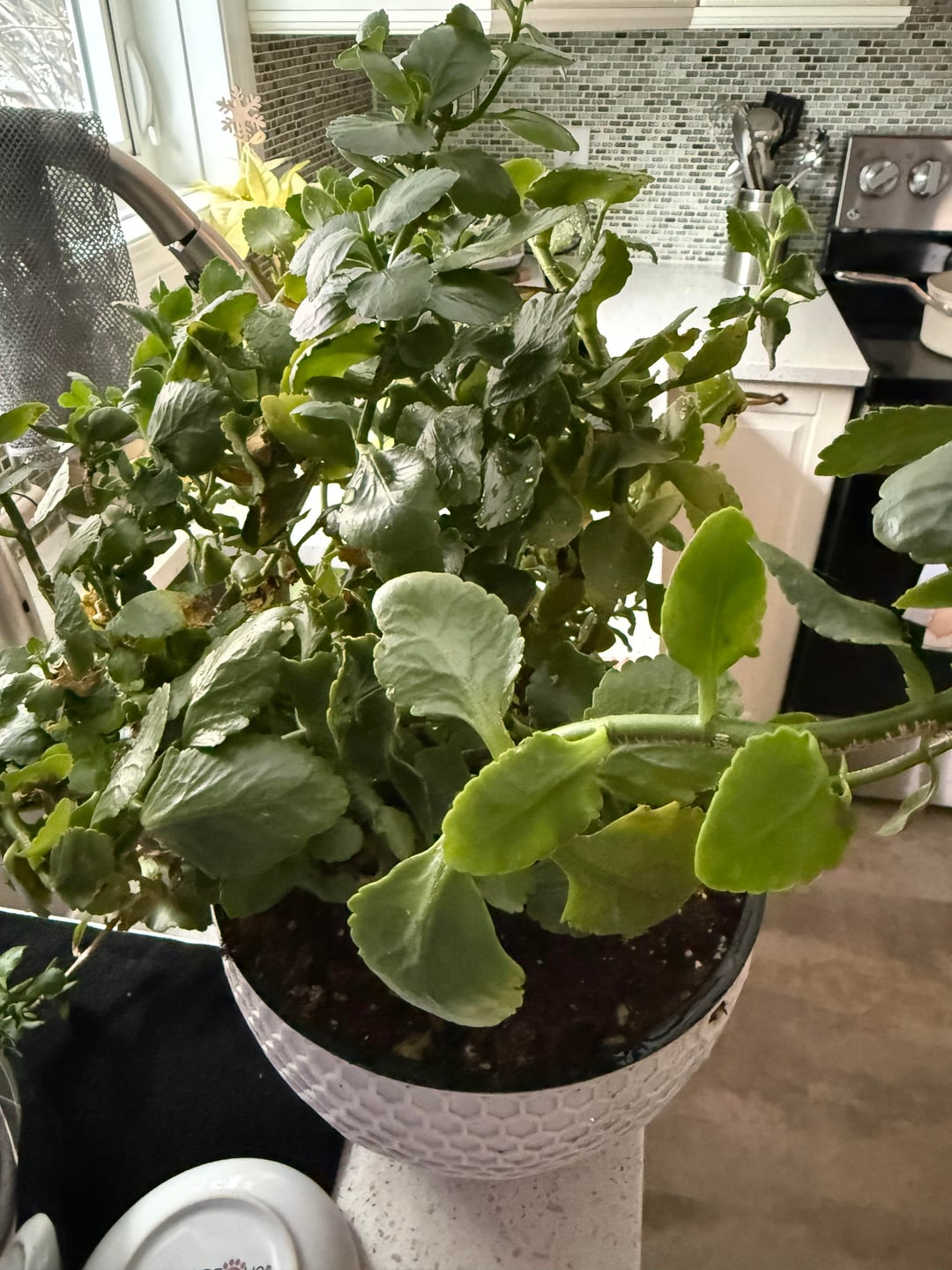*Kalanchoe blossfeldiana* cv. If you want it to bloom again, it needs a period mimicking dormancy if you live somewhere that doesn’t get much darker as seasons change.