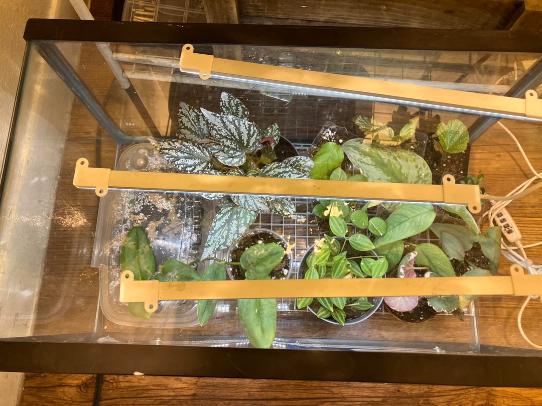 Got this Rex begonia from Home Depot last night & would like to know what it is. THIS IS NOT WHAT IT LOOKED LIKE LAST NIGHT. It, as well as all of their tropical plants, had dried out so much that the soil in every pot was hydrophobic (I looked through EVERYTHING) & light as air. This poor little guy was wilting so bad it could have been considered dead but I brought it home, and bottom watered it for like 30 min. Then I put it in my propagation tank for high humidity under a grow light for maybe 4-5 hours. When I went to turn my grow light off at around 1am I noticed it wasnโt wilted anymore and has been very bouncy and robust ever since! I was not expecting it to bounce back in the same night at all! I took these photos of it this morning.