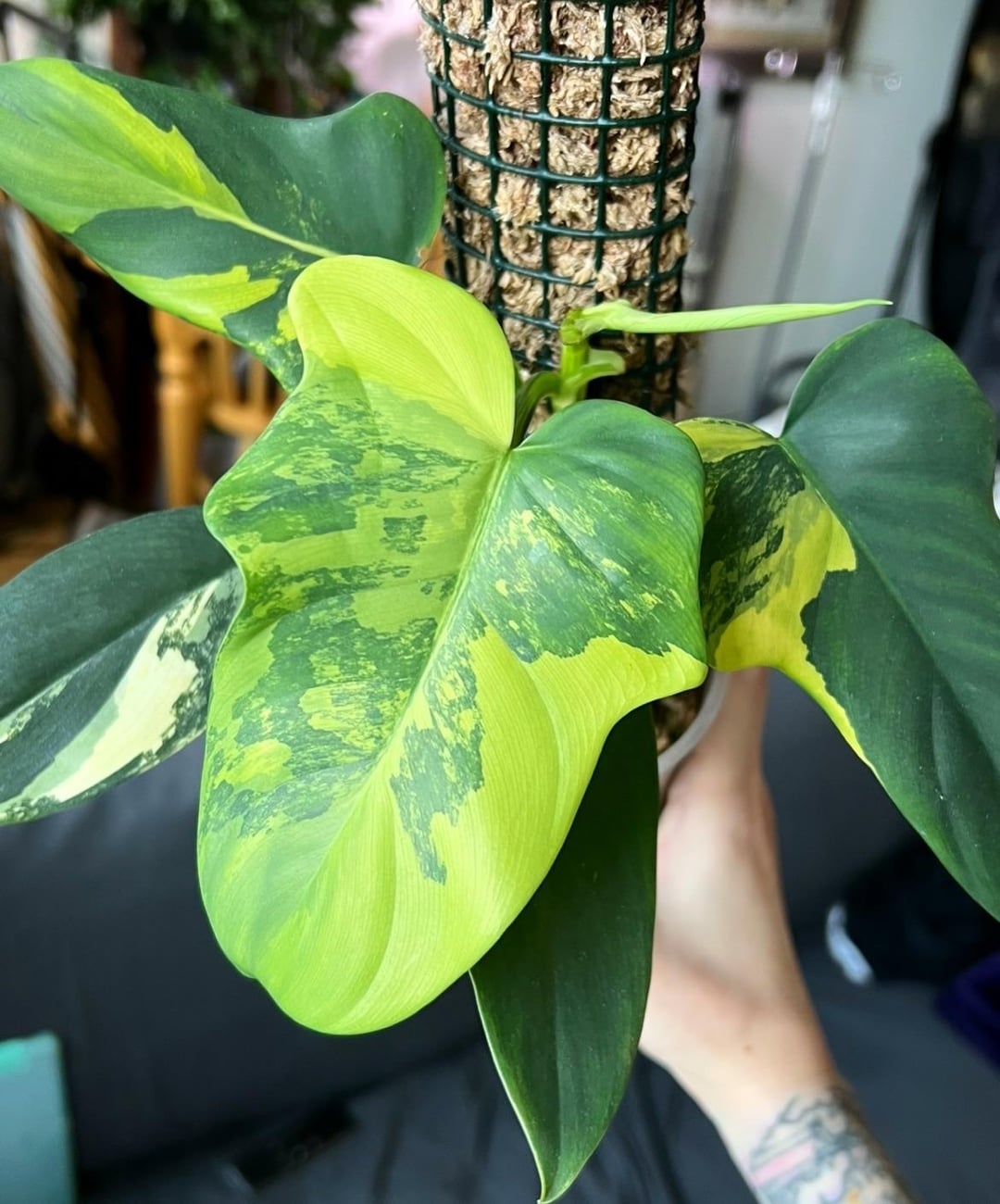 My var. philo bipennifolium is reallllly starting to become a stunner. Once a 1 leaf butt cut, she now has two of three growth points actively growing. Being patient & hoping for cream to burn in. ๐ค๐ผ