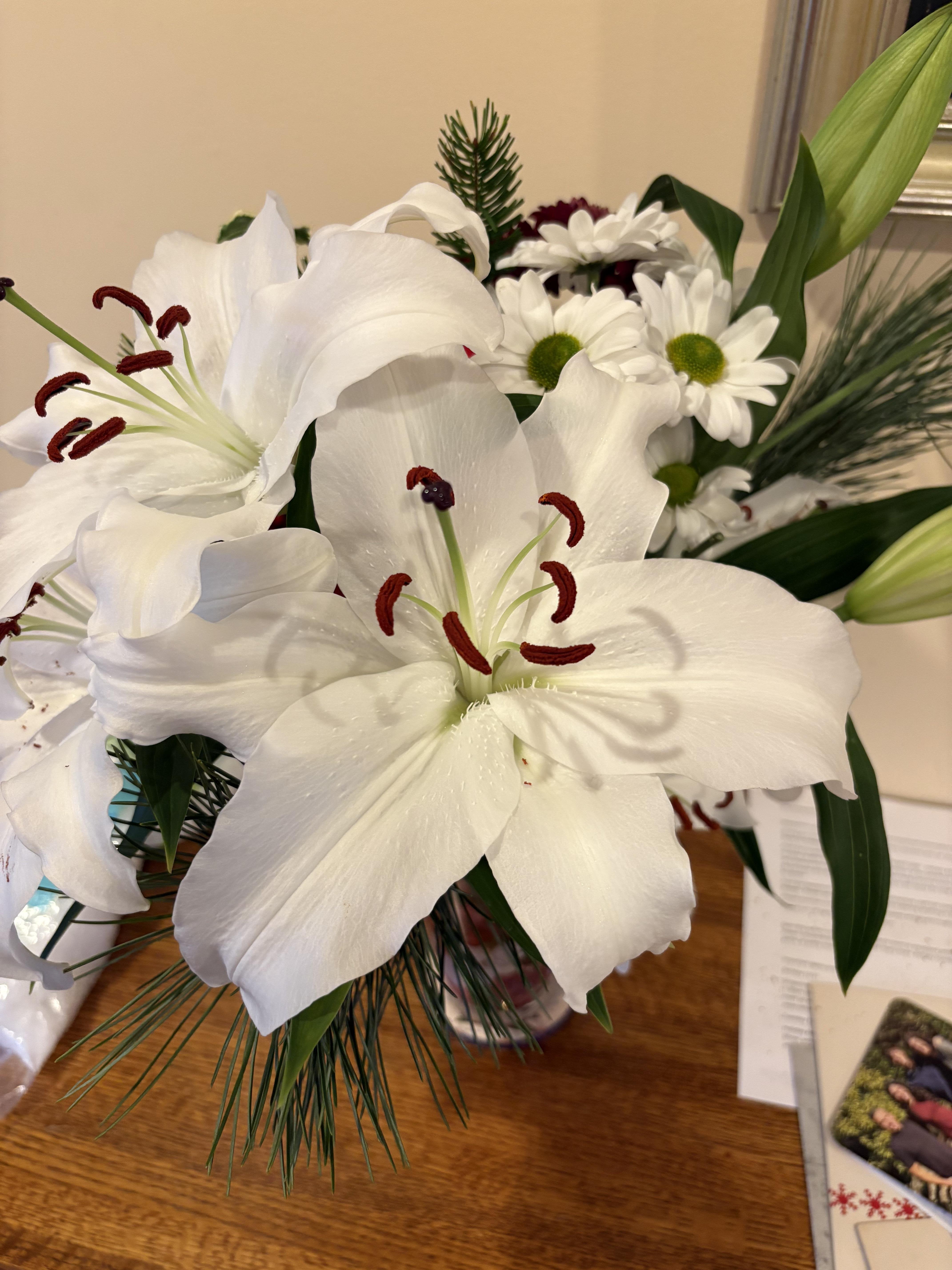 I got her to the vet ER within 30 minutes of eating the pollen, and they treated her within 15 minutes of our arrival. The vet asked exactly what lily she ate, and when I said I wasn't certain, she suggested calling the florist or posting on a subreddit or FB group to ask. As I mentioned in my original post, the florist didn't know when we called, so I posted here. This was just a grocery store florist that my parents go to. My kitten and I are visiting from out of town for the holidays and staying with my parents, who did not know that lilies are toxic to cats. My sister and I told my mom they were toxic and put the flowers in a locked room without the cat. I guess my mom didn't hear us and thought we were hiding the flowers so the cat wouldn't knock them over, so she put them back out in the living room that night. When Ru and I woke up, we went downstairs, and she ran to the flowers before I could get her. I got her to the vet ER as quickly as I could, and they held her for 48 hours to clear out her system and keep her on an IV. Thankfully never displayed any symptoms of poisoning and her liver values have stayed healthy so it appears we are in the clear!!