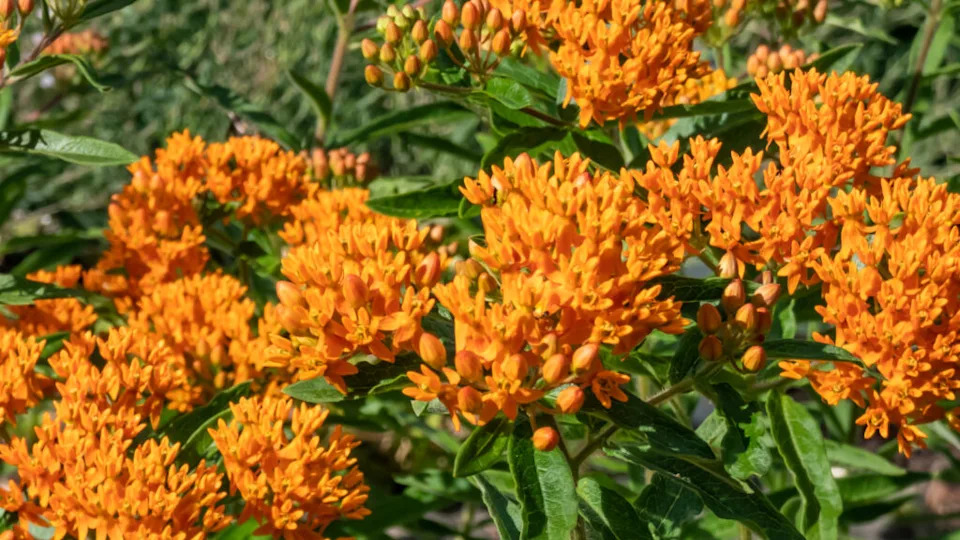 As the name suggests, the bright orange flowers of butterfly weed attract butterflies and other insects. This small perennial plant forms clumps of attractive foliage and grows best in full sun.