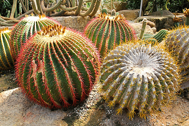 It all depends on the variety and growth conditions. Not sure what species this one is, but I know there are some barrel cacti with persistent red spines.