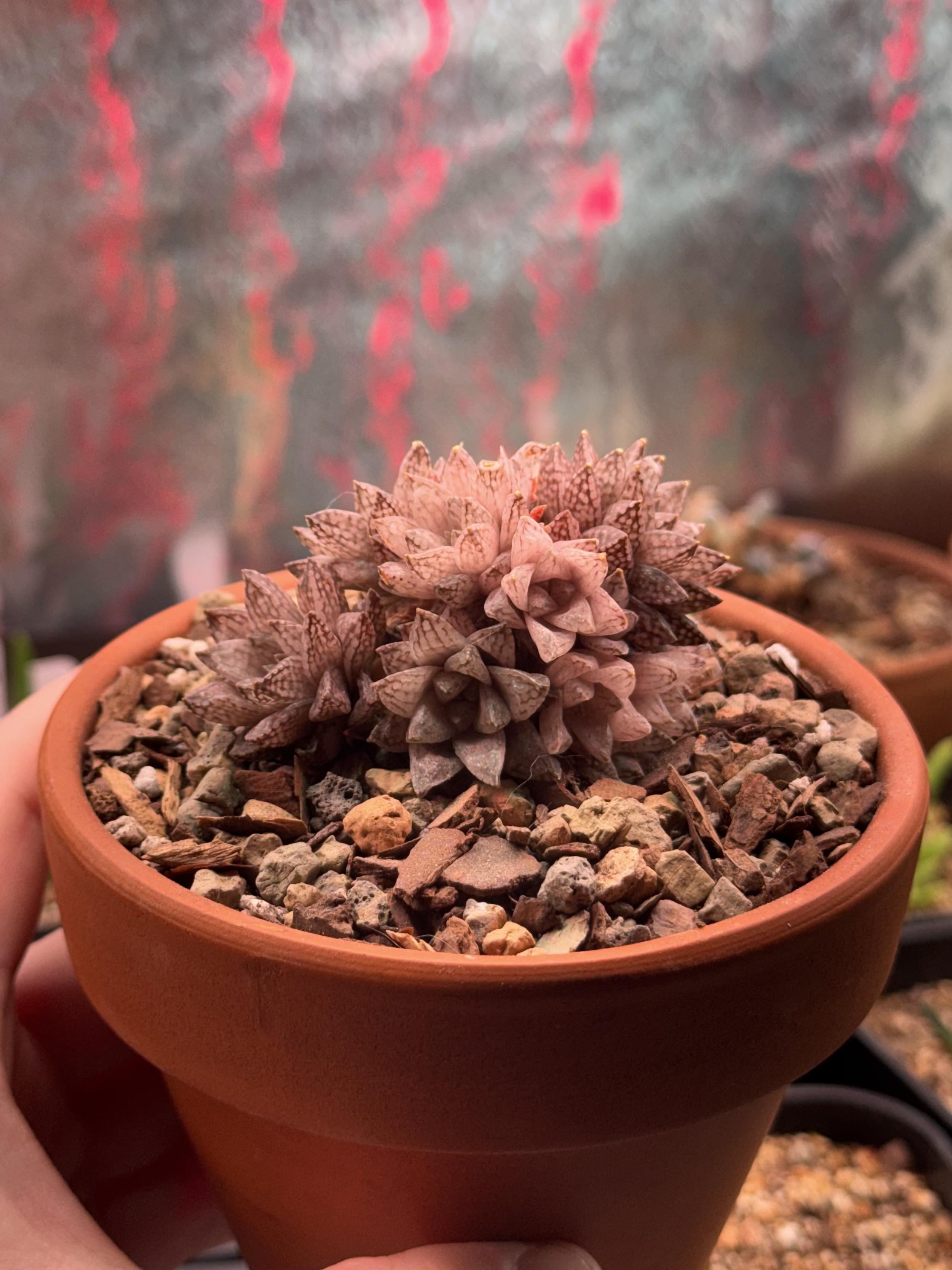 I wonder if it’s in a kind of dormancy doom loop… you say you are watering scantly? It’s in that ‘jacks gritty’ mix or something similar in a small terra cotta pot. This could dry very sharply. Sometimes you aren’t seeing much activity so you water very little, and if it dries quickly the plant will just stay dormant forever because it never stays moist long enough to grow. It’s especially a thing when plants need to grow new roots. Haws usually ditch the old roots and grow new ones after a re-pot. So if the media dries very quickly plus it has a tiny root system it’s going to have a hard time getting enough water.
