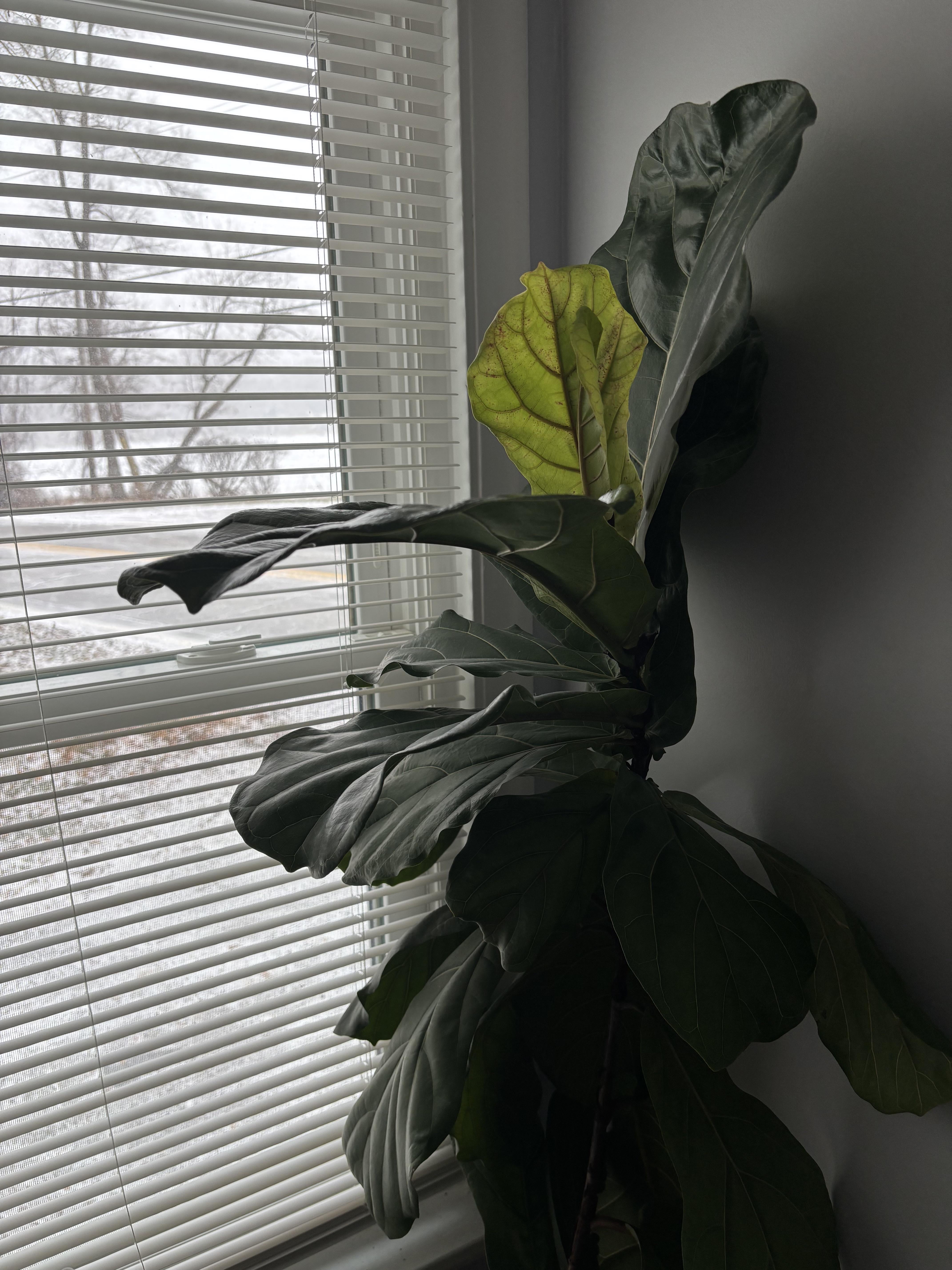 Here is my 4 year old Fiddle Leaf, Dr. Fiddlestein, who has (mostly) thrived on neglect. New leaves often times have these little brown spots but he’s been at it for years and I just let him vibe.