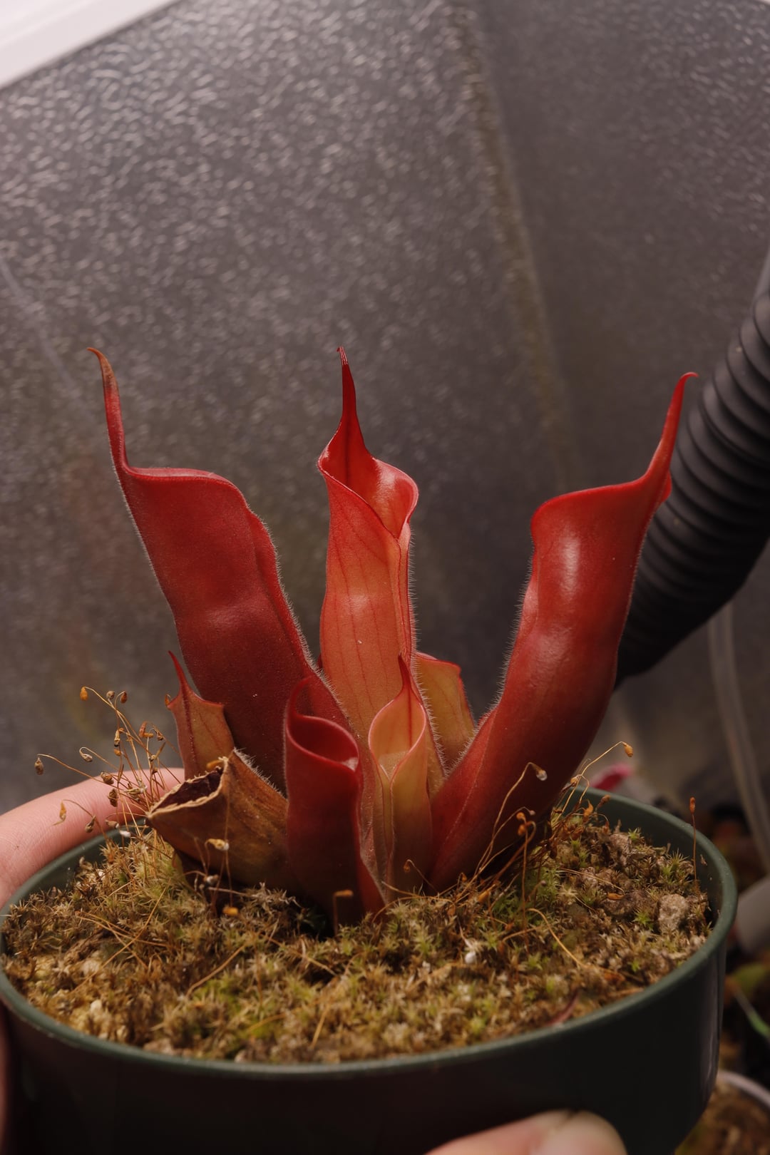 A year of growth on H. sarracenioides x minor Burg Black.