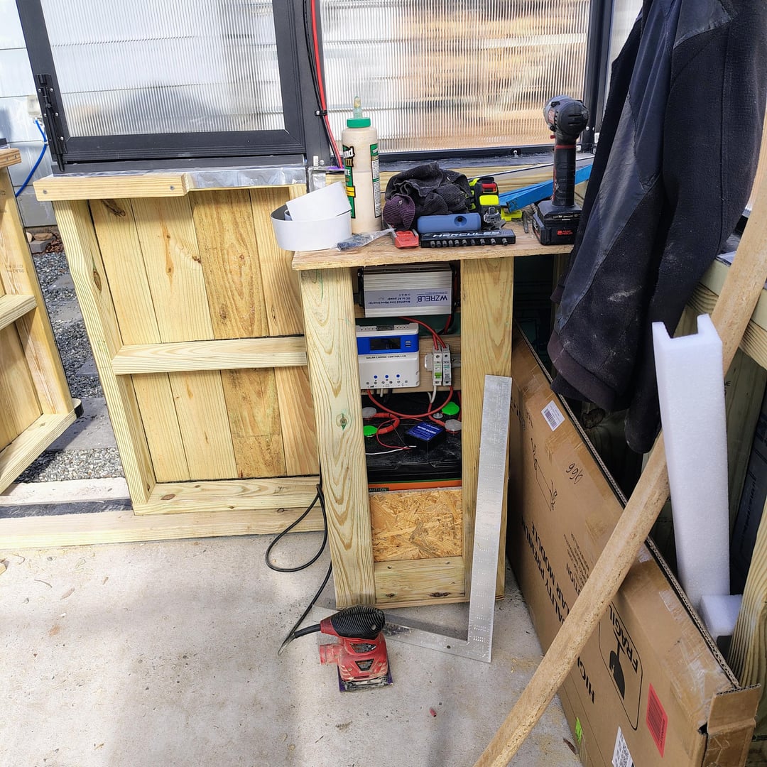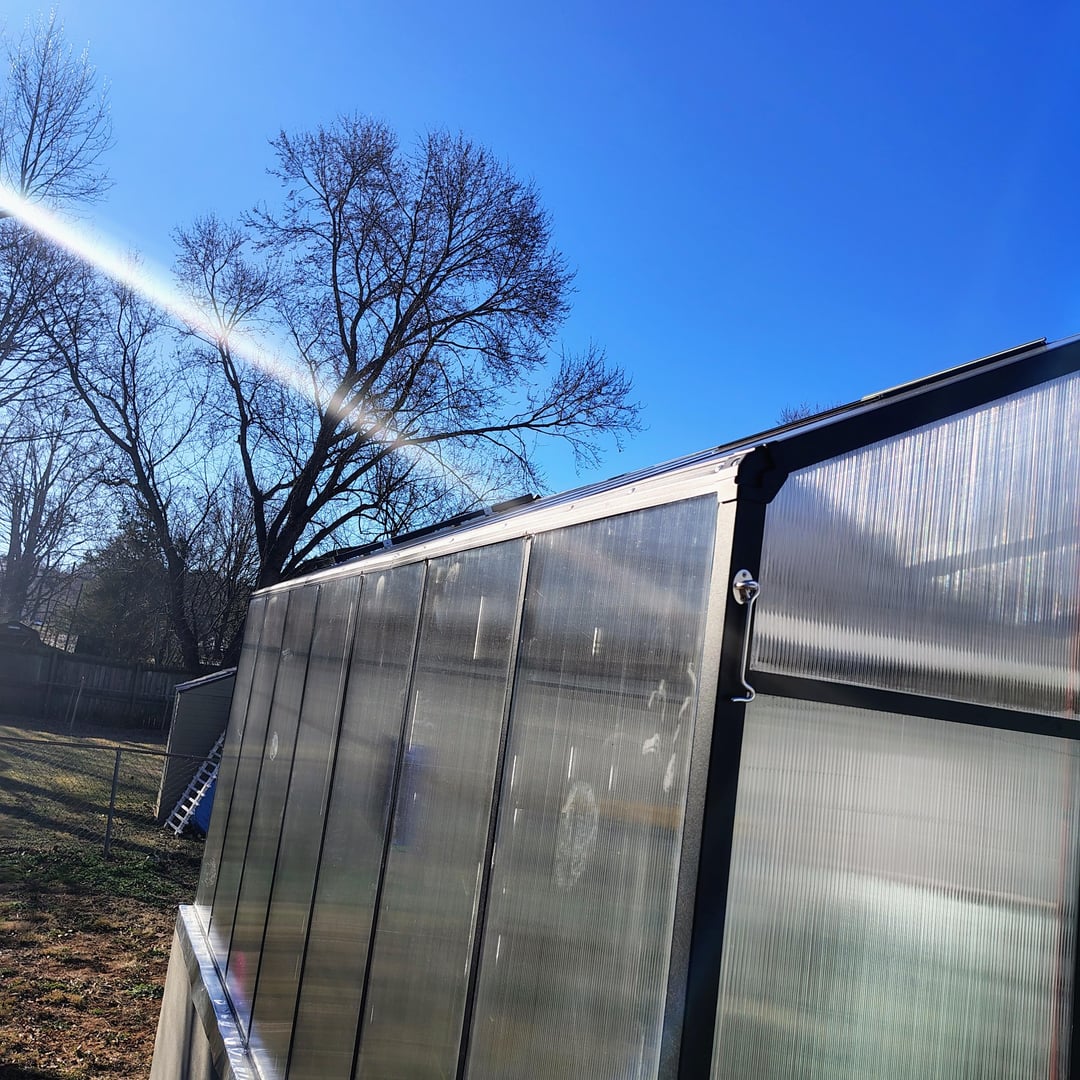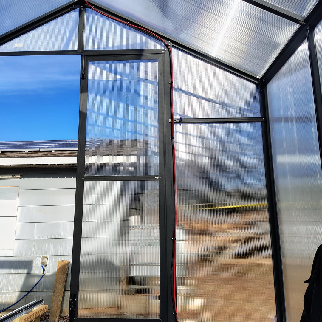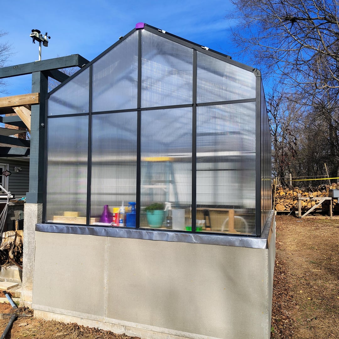 I've been lurking for awhile, learning from some posts that I have seen. Decided to invest in a greenhouse, 8×14 noticed that it was a little too short so decided to add 3ft and now is 10ft tall inside and no one needs to duck at the walls (used to be 6.76ft at the ridge and just over 4ft at the walls). I'm insulating the bottom, not finished with the outside as it will be water sealed. 200w bifacial panels (expandable), 2560wh on battery( some fans during the summer and a small heater during the winter). There will be some vents for summer to have more air coming and hot air being pulled. I also have a 100 gallon black water tank to collect heat and release it during the night. My goal is for the greenhouse to be self sufficient. I need to collect the water from the roof but I can't find accessories to add to it, as easy as just screwing some gutters and redirect the water to the tank.