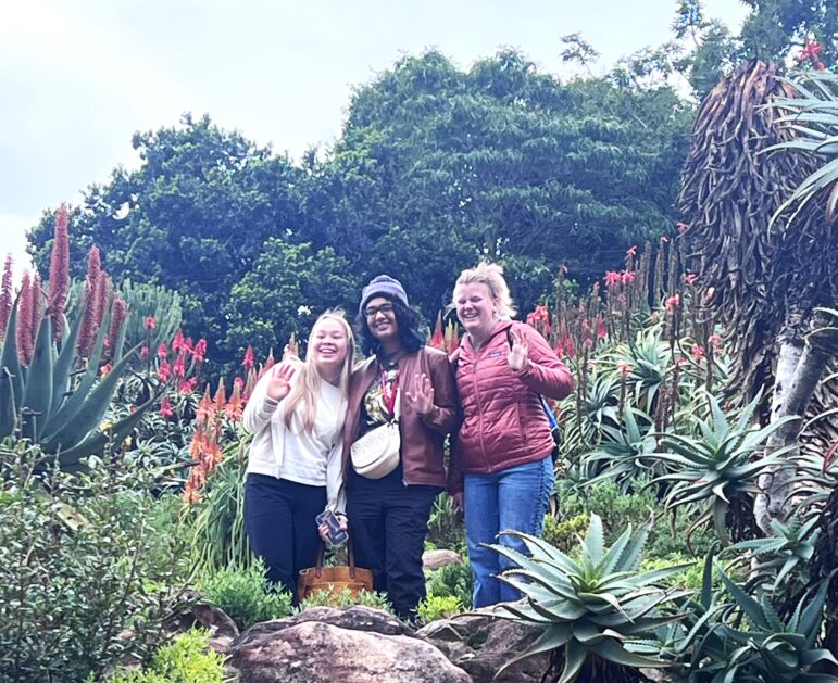 YJI students Annamika Konkola of the United States, Anya Farooqui of Pakistan and Norah Springborn of the U.S. in the Kirstenbosch National Botanical Garden in Cape Town.