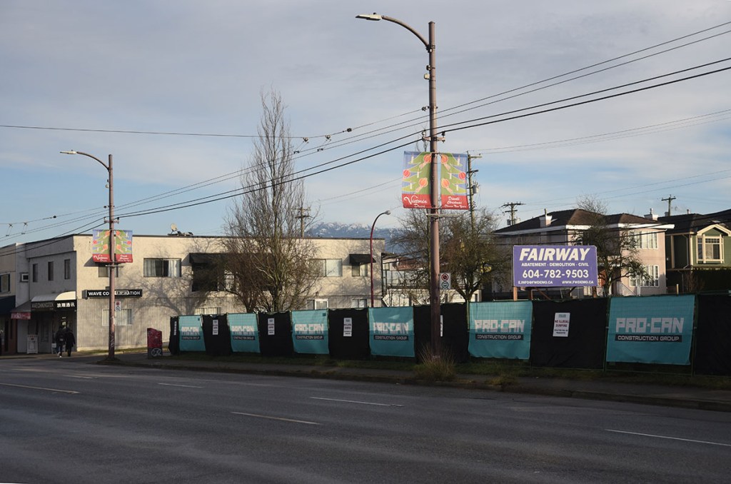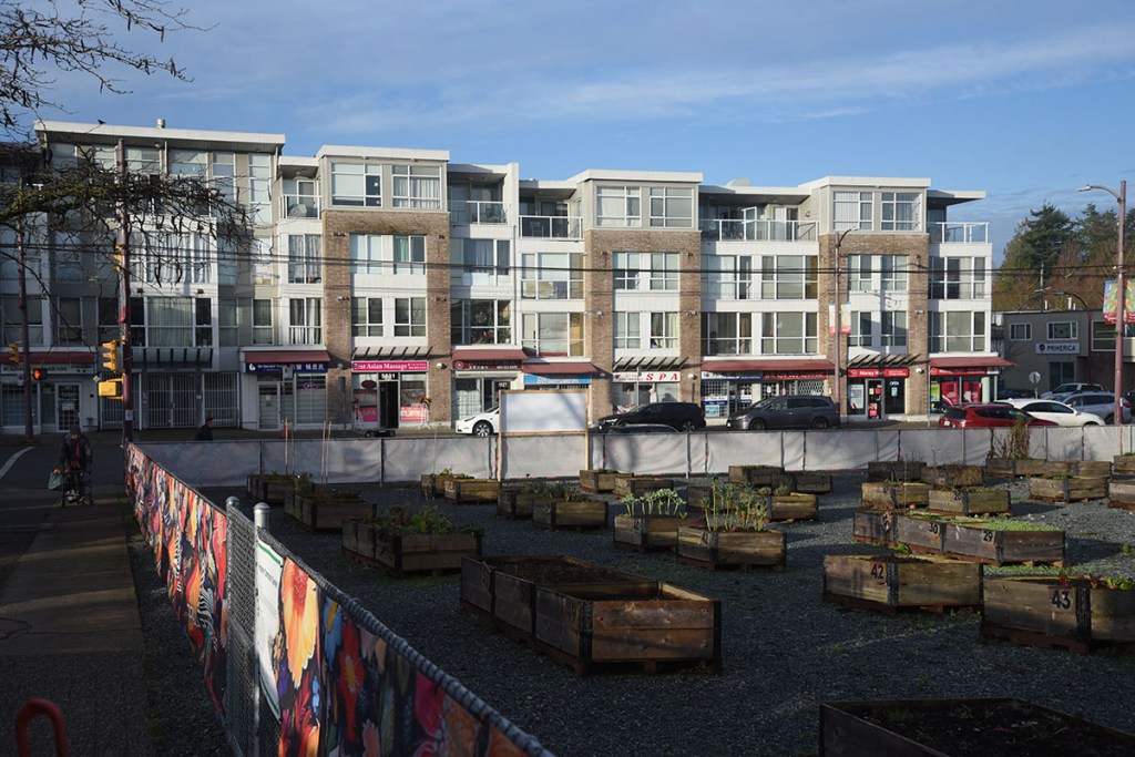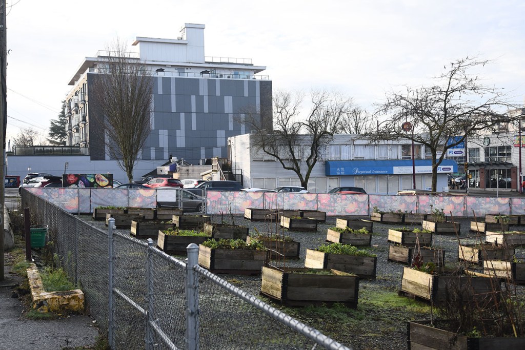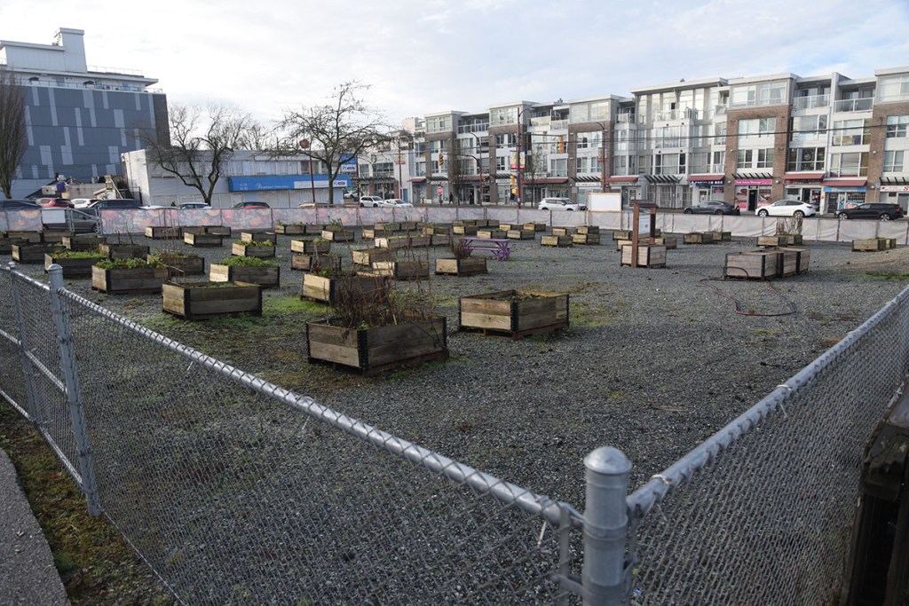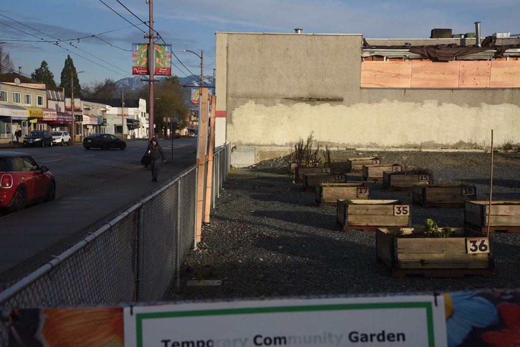 There are two items of interest with the property at 5590 Victoria Drive. One is the Temporary Community Garden on the site. We’ve written about the tax breaks for empty lots that have been turned into community gardens or off leash dog parks in the past. Is this a good use of the site, or is it too much of a tax break? According to a news piece by Kristen Robinson of Global News ‘Simply a scam’: B.C. community gardens growing big tax breaks for developers” (24-Dec-2025), this community garden saved about $28,800 in municipal taxes in the year 2025 alone.