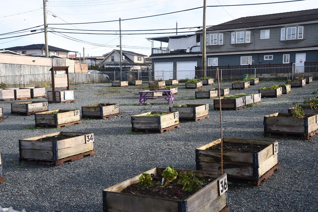 Community garden from laneway, looking south