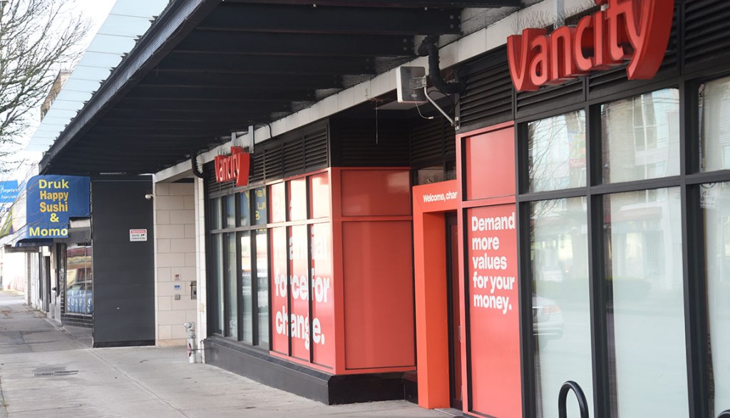5656 Victoria Drive. Note the Vancity branch at street level (contrast with other sections of Victoria Drive that contain many small storefronts).