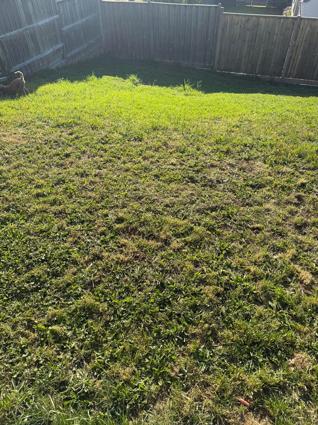 I recently bought a house with a yard that mainly comprises of weeds as seen in the first photo, however the back quadrant has this patch that may be actual grass is anyone able to confirm if this is the case?