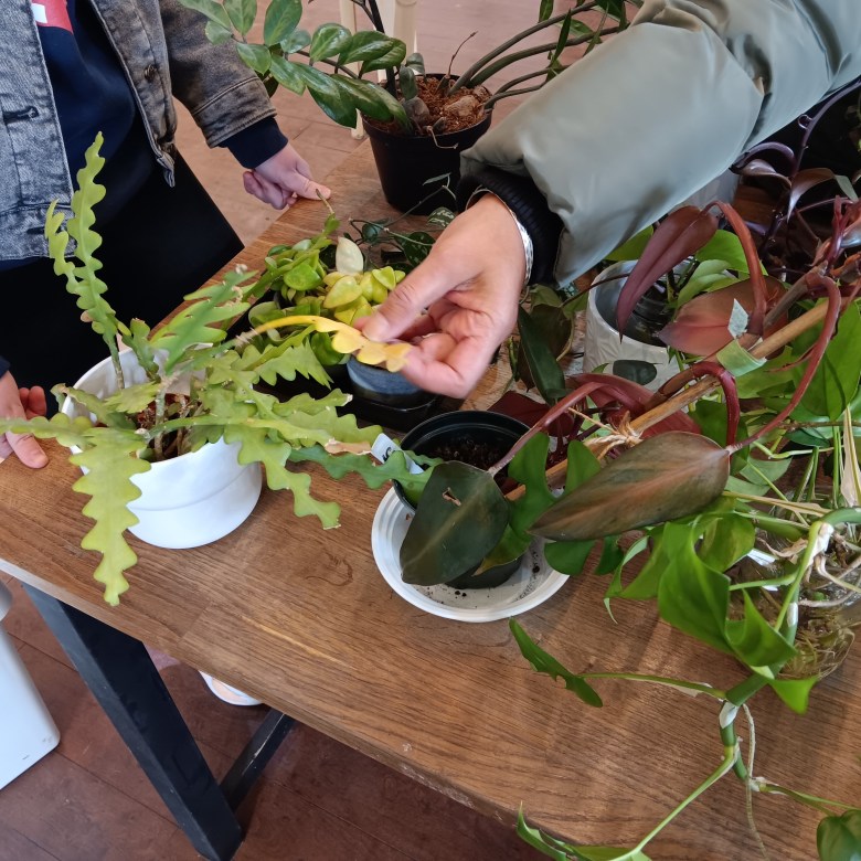 For now, after finishing repotting Vanapalli’s hoyas and fish bone cactuses, Lynn planned to take the potting table home, a new platform for the art project that comes next to her.
