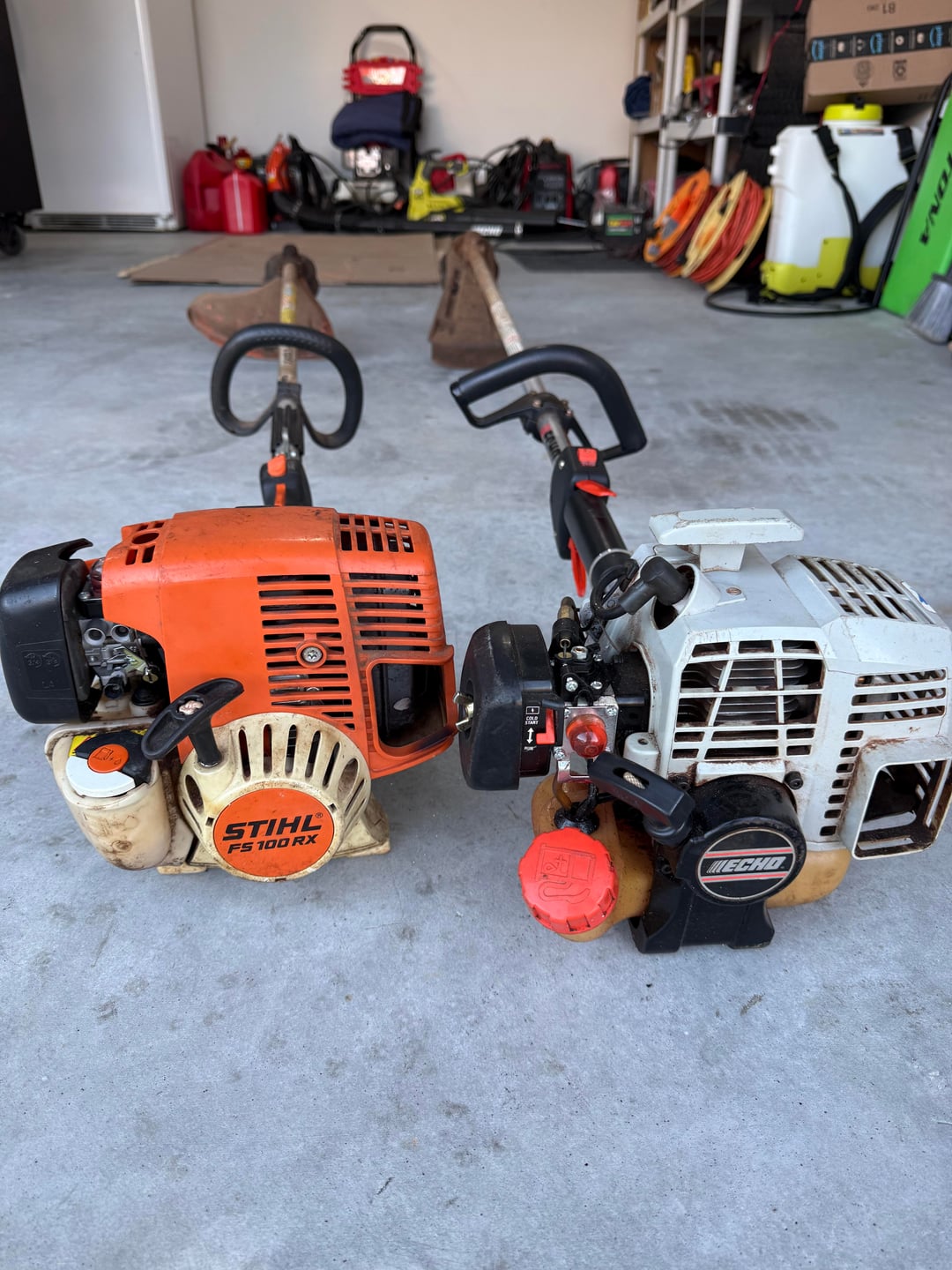 Got these both for free at garage sales. Both didn’t run but I changed the carbs / tuned them up and now they run great. The stihl feels overall better and more solid / has more power.