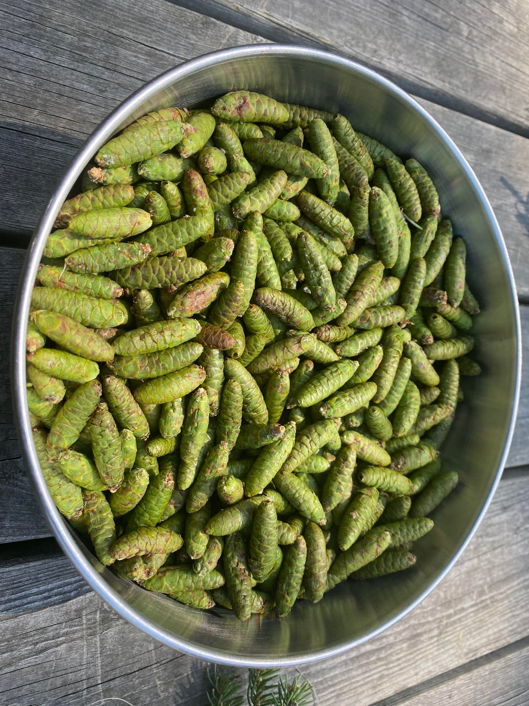 1.8kg of spruce cones with which we made 2 bottles of muglio.