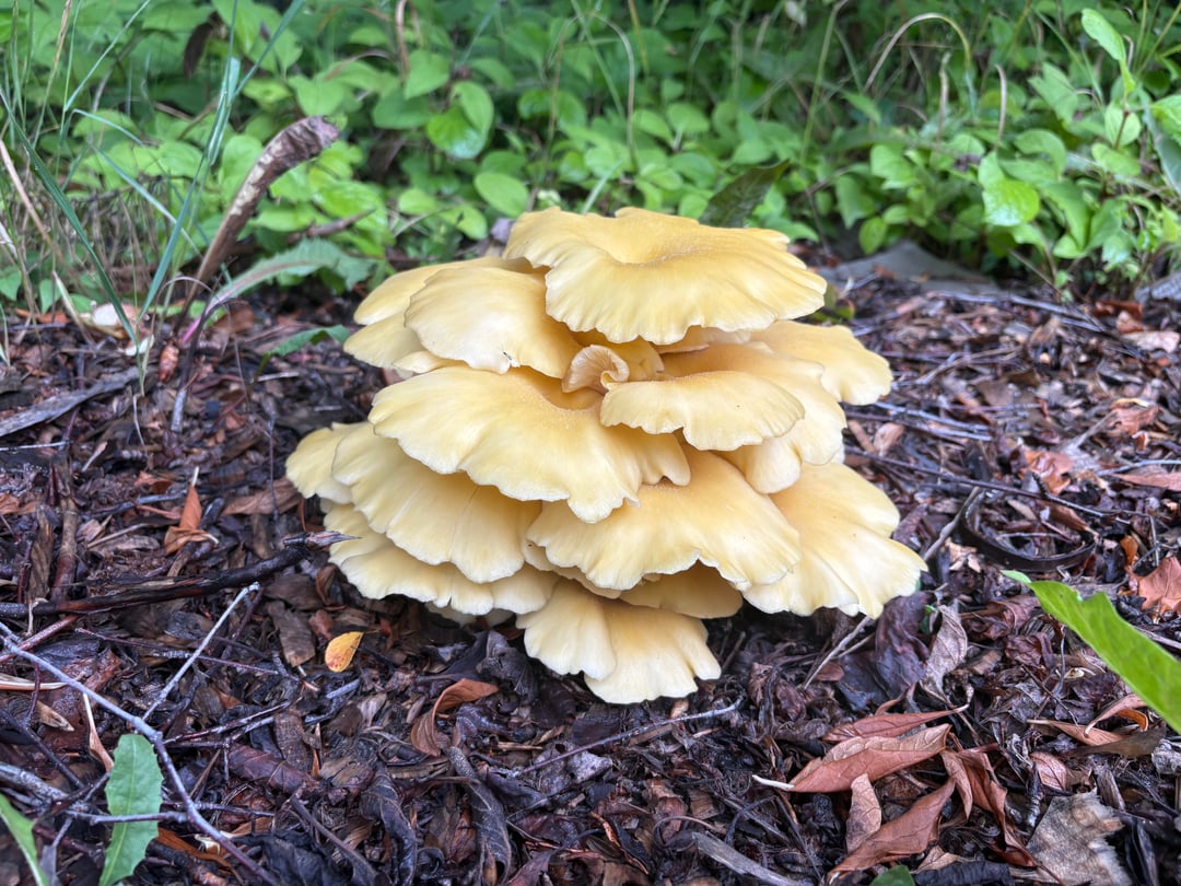 0.66kg yellow oyster mushroom on wood chips