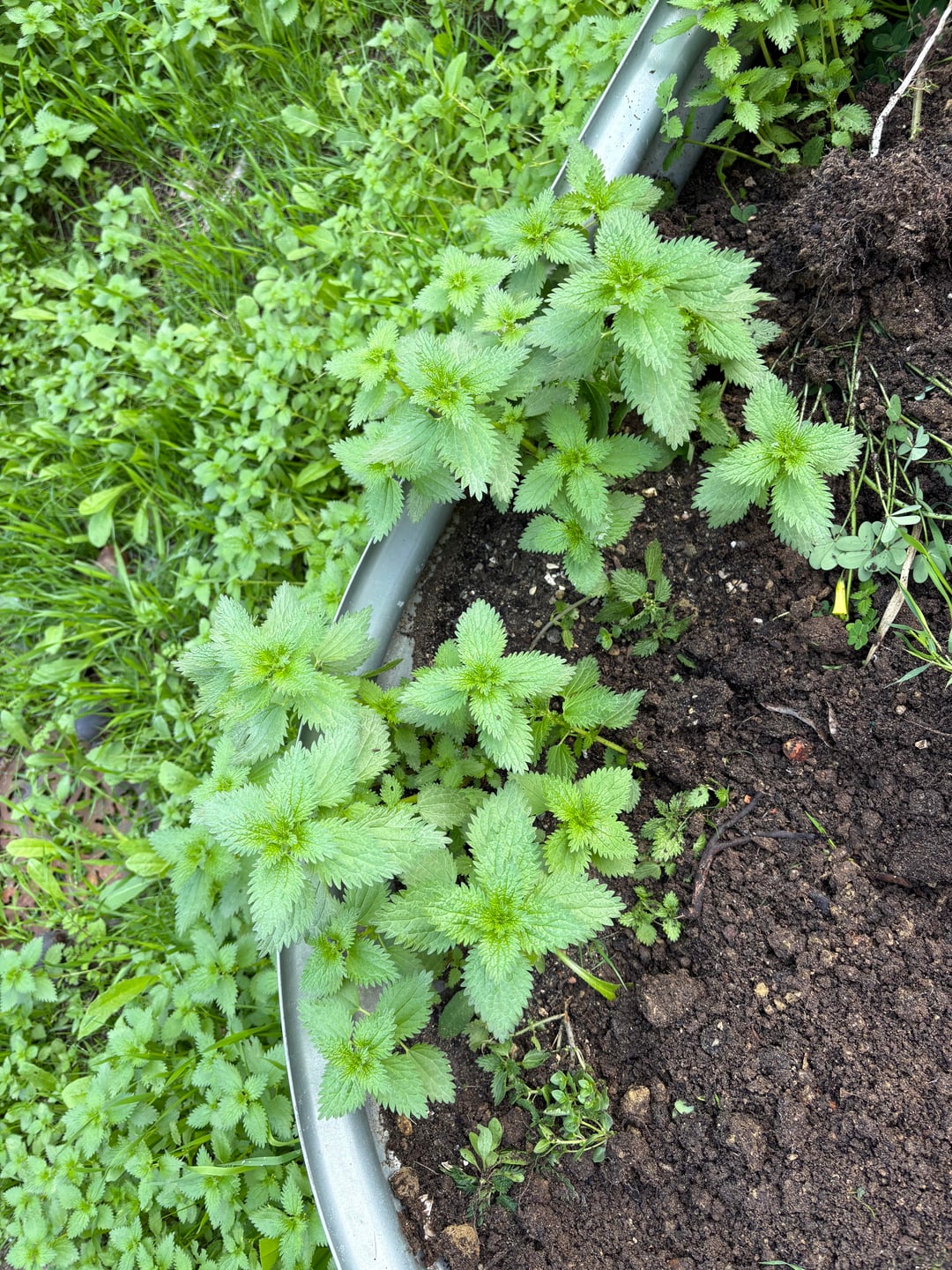 dintydoor 3 days ago Looks like stinging nettle to me. the stems should be square and little hairs on them. will leave small stingy bumps on your skim where you touch it.