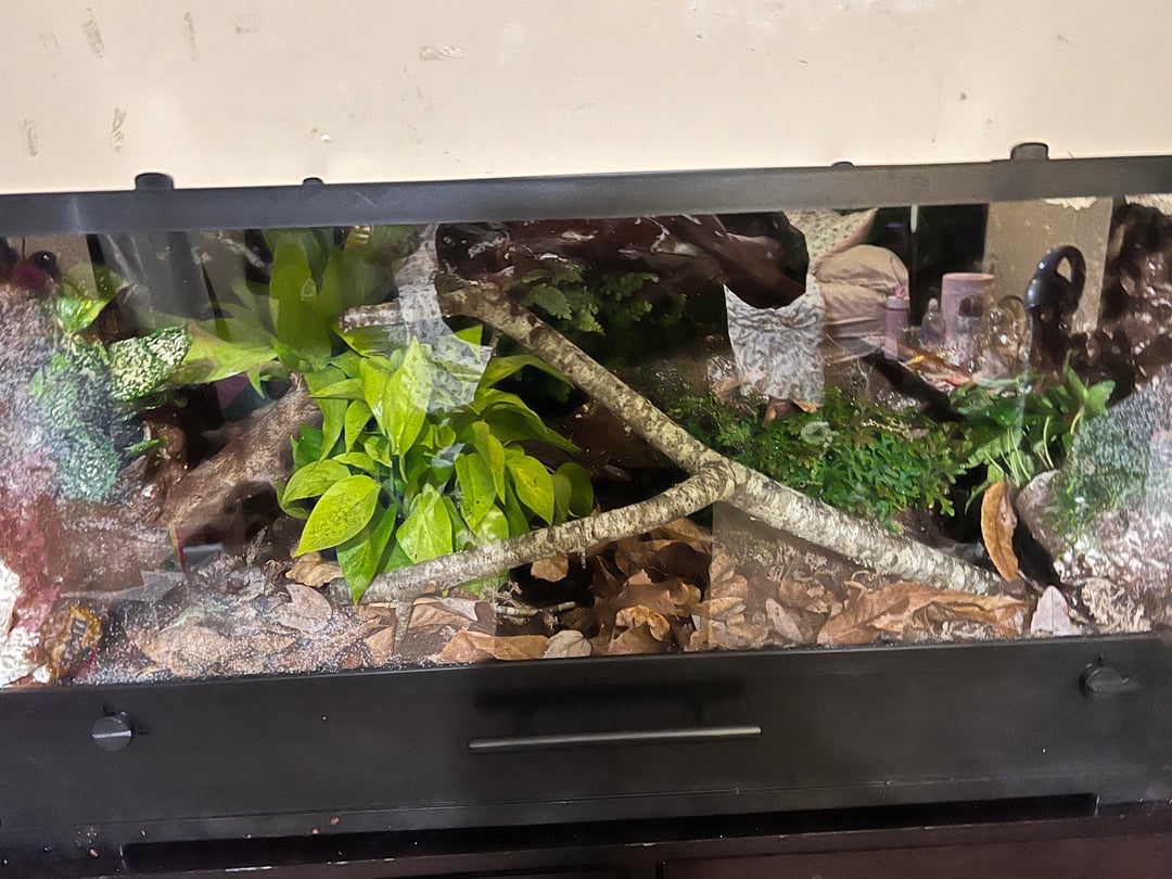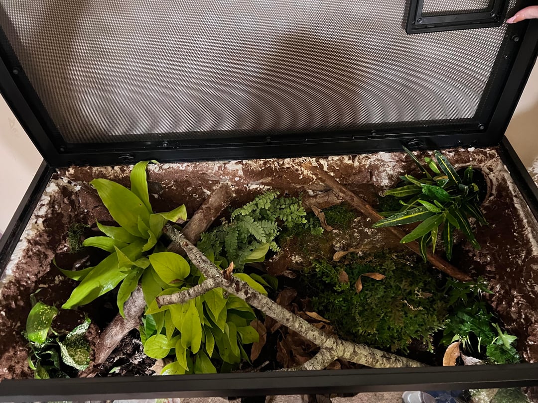 Coming out of it, I think I could’ve used more depth and ledges on the background. The budget also limited the amount of substrate I could buy, so theres maybe less than an inch of substrate for some parts of the ground. Lastly, I’m just worried about whether or not the amount of springtails was good enough for this size. So to help with the population, I added pinches of some active yeast to help grow the population within the tank.