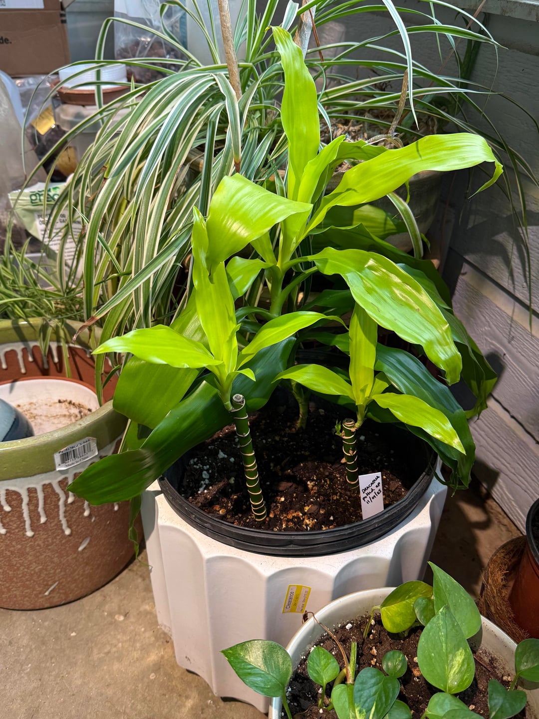 On 09 August I cut up a long Dracaena stalk. I had 4 sticks and the crown, 5 total. 09 November I planted the crown and 2 sticks.