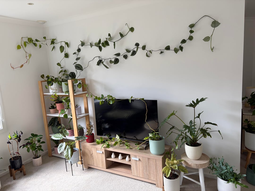 This is about half of my plant collection – last night I attached the climbing plants to the wall and I am obsessed! Feel free to provide any feedback as I’m still a bit of a rookie 🤣 by Outrageous-Ask-3882 Indoor Garden 1 Comment Primary_Discussion_4 6 days ago Please, make sure that electrical devices should not come in contact with live plants. Or other wise indoor garden looks good.
