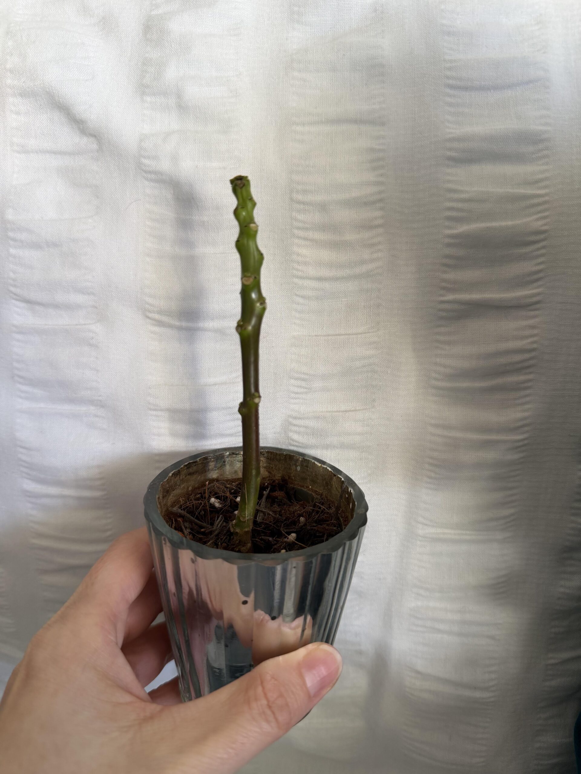 My mum was given a little poinsettia plant just before Christmas by her sister, but she’s disabled and her carers literally drowned the poor thing. Her leaves wilted and fell off and what was left was very soggy, I’ve taken her out of her wet soil, trimmed her brown roots, replaced her soil and removed her dead/dying leaves right back. I watered her a very small amount when I first changed her soil. She can’t be on a window as there’s a draft on there but she’s in a warm, South facing room. I’m going to buy her a new pot as this one has zero drainage but is there anything else I can do to try to save her or is it too late?