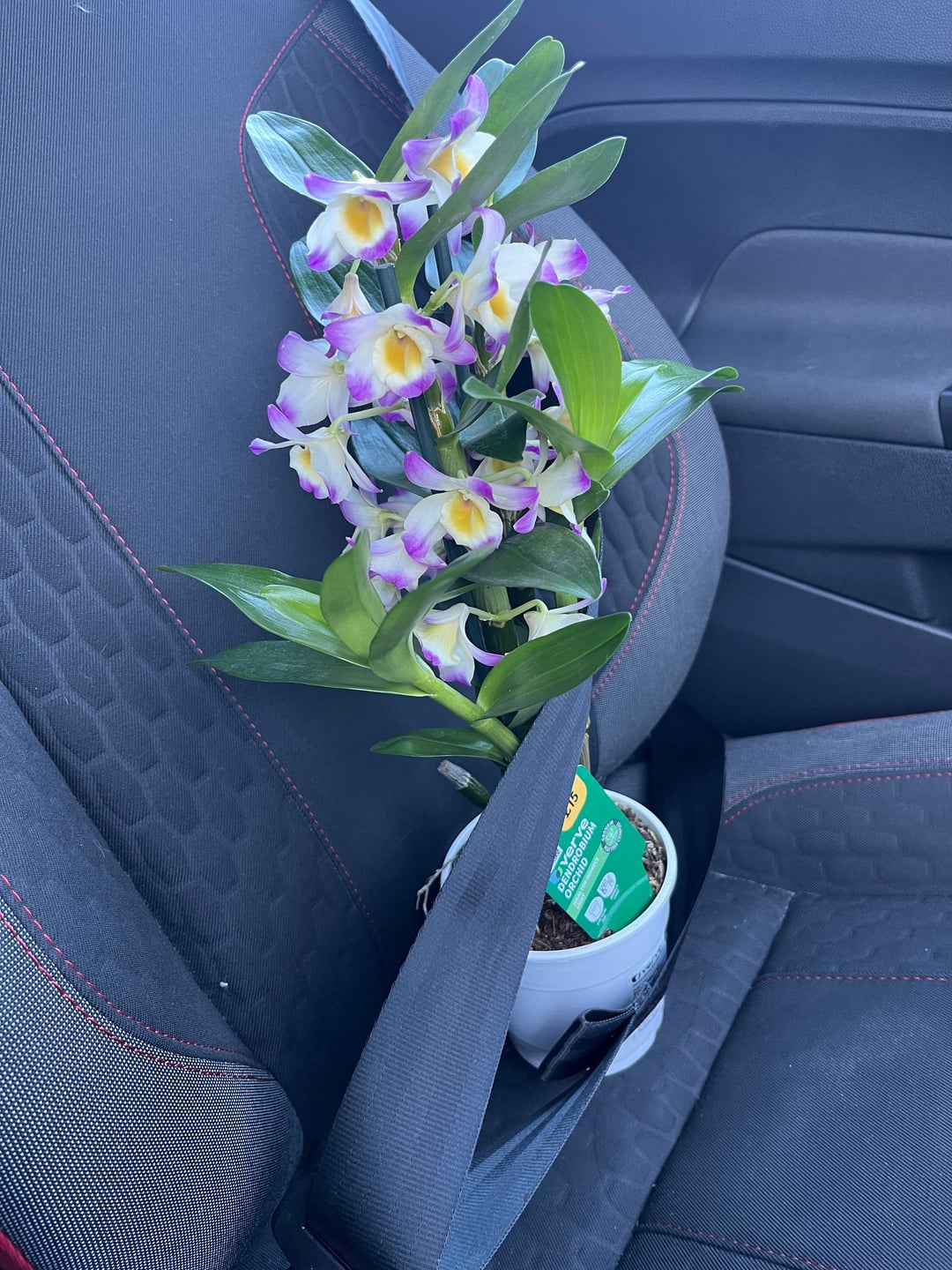 Found this one at the local B&Q and couldn’t leave without getting her. All my other ones are phals and one paph so hopefully can do well with this one. Any tips on how to care for her please?