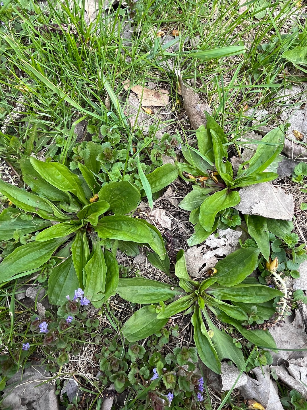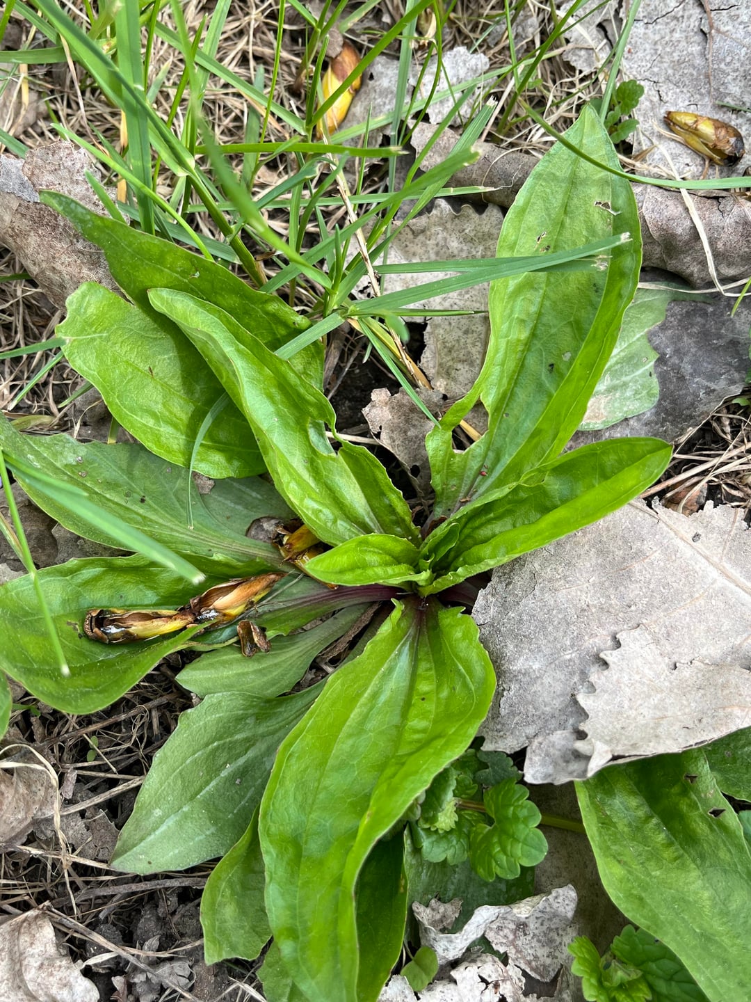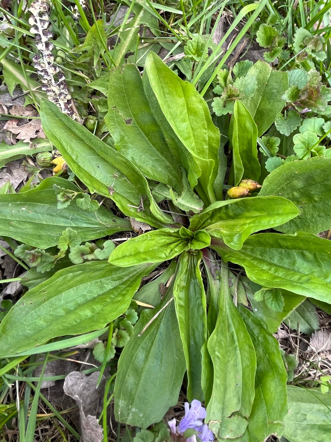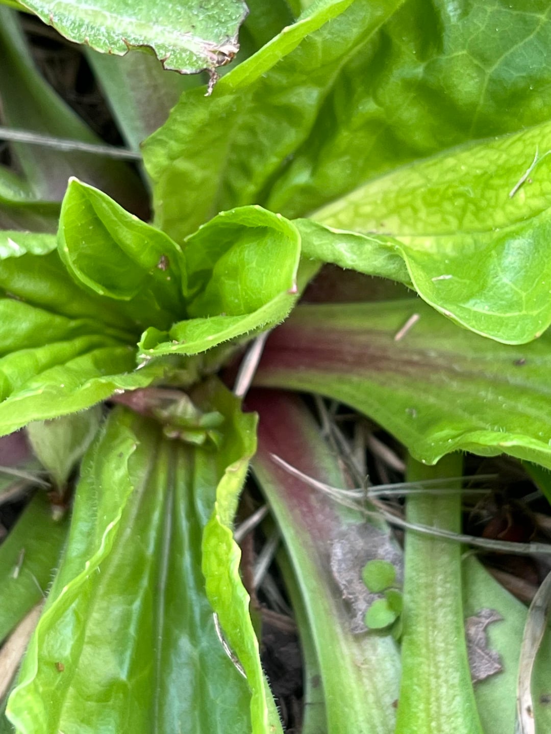 Plantago rugelii is a native species of Plantago. Plantago rugelii is native to the eastern half of the USA. The difference between the native Plantago rugelii and non native Plantago major is Plantago rugelii will have red at the petiole and slightly narrower leaves. Plantago rugelii also will have taller skinnier flower stalks and black seeds. The non native Plantago major will have wider leaves and shorter more compact flower stalks and lacks red on the petiole. Plantago rugelii thrives in compacted clay or sandy soils and likes full sun or part sun.