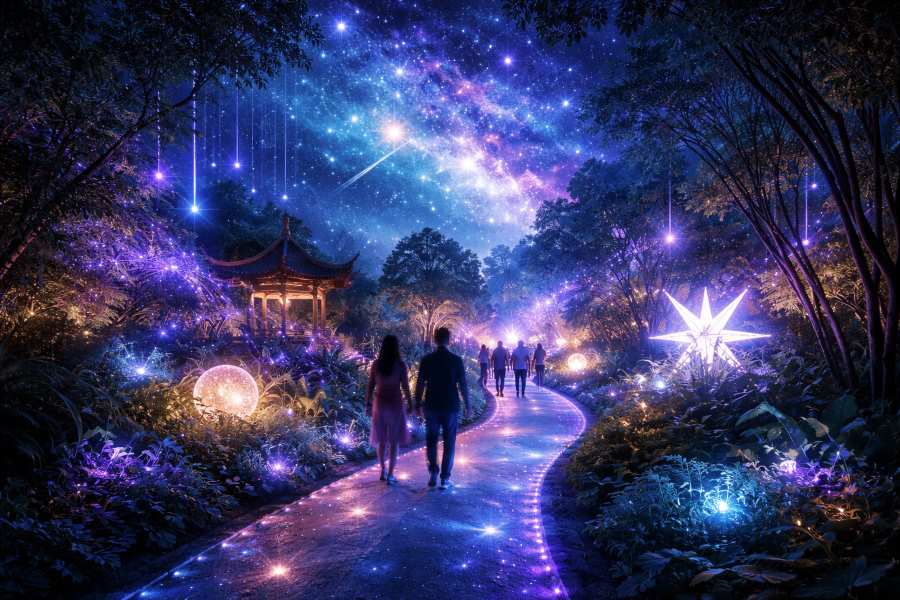 Astra Lumina stands out among other outdoor exhibitions and light shows by offering a walking experience that combines immersive storytelling, cutting-edge technology, and awe-inspiring visuals. The integration of lights, sounds, and cosmic imagery creates a fully immersive environment, transporting guests into the depths of the universe. Unlike typical light displays that focus solely on visual effects, Astra Lumina invites guests to participate in a sensory experience that is both visually stunning and emotionally moving. The Seattle Chinese Garden, known for its peaceful surroundings and natural beauty, serves as the perfect backdrop for this celestial journey. As visitors walk through the garden, they encounter a series of illuminated sculptures, cosmic projections, and immersive soundscapes that bring the stars to life.