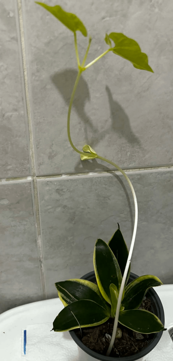 We have a dwarf snake plant placed inside our bathroom. After a month, this thing grew, what is this? by Melodic-House-23 plant identificationWhat's this plant 1 Comment Mini_Chives 3 days ago Looks bean-ish, not sure how a bean got in there.