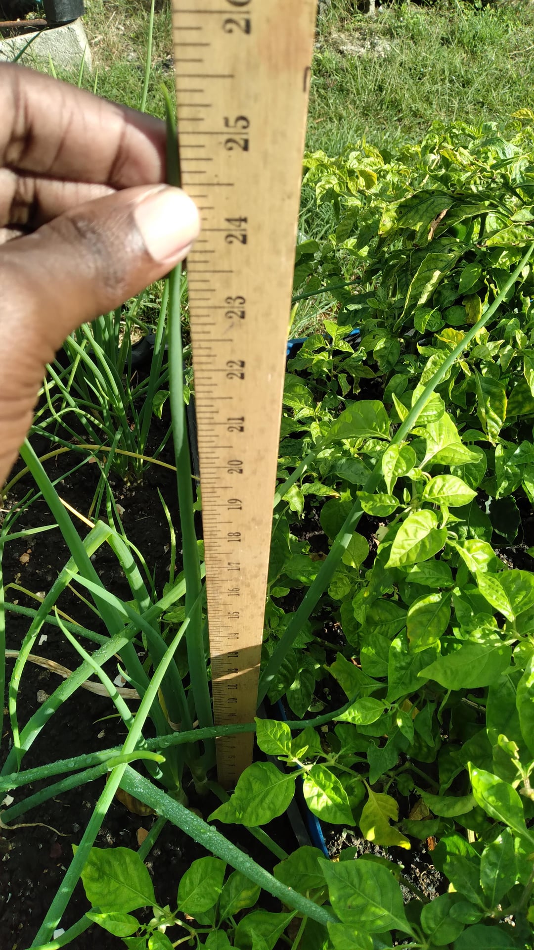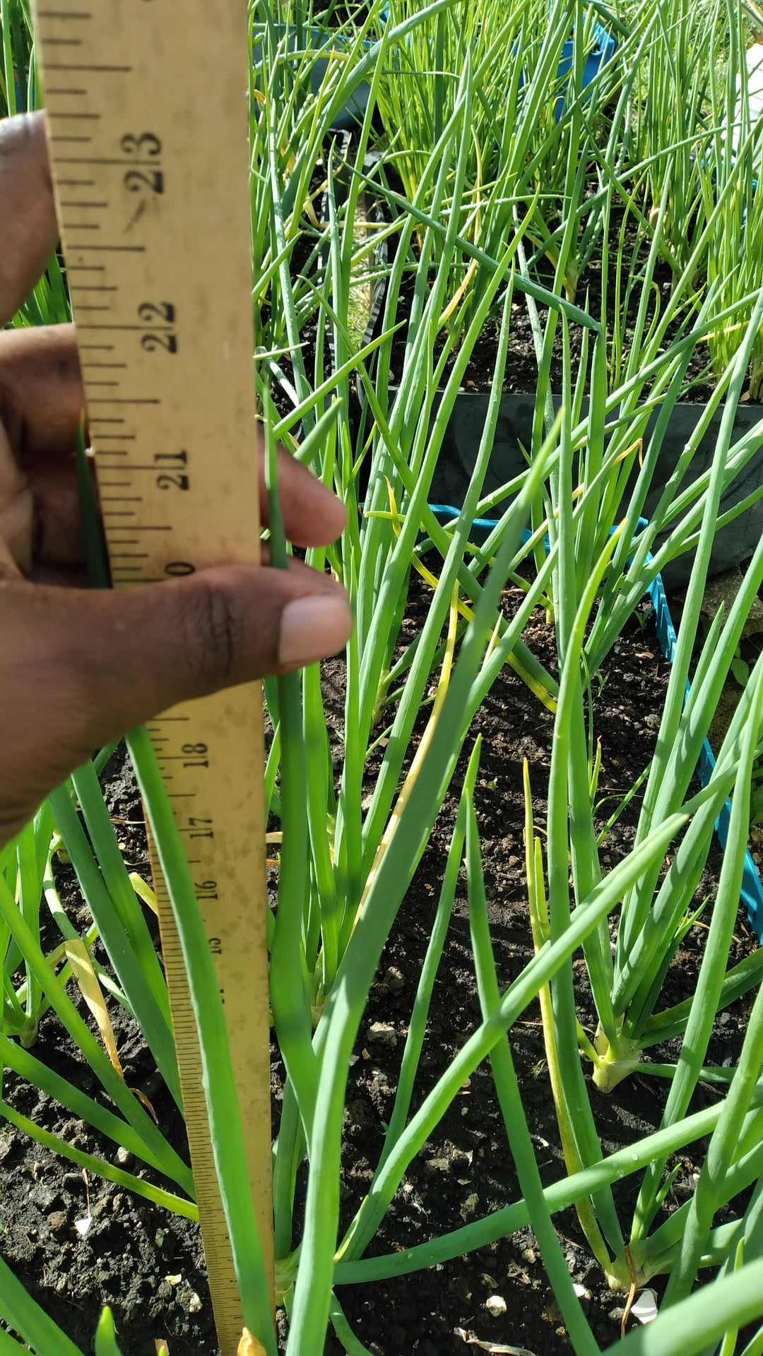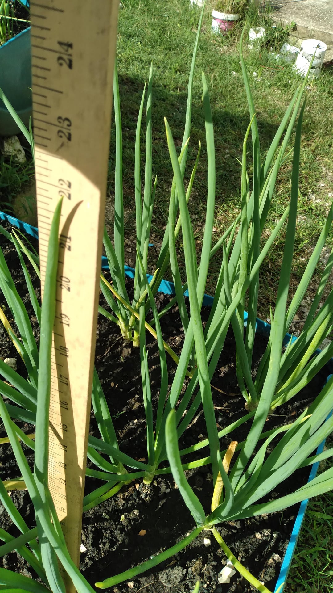 Typically green onions/scallions/chives grow in the 12-15 inch range but this yield I will soon be harvesting has produced some of the biggest & longest my eyes have ever seen 21, 22, 22.5 inches is redonkulous.