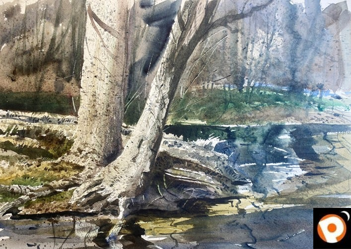 The 36 original works in the show were donated by Sakson’s widow, Carla Sakson, to the Garden State Watercolor Society in his honor. Most of the paintings are unmatted and unframed, sized 18-by-20 inches and larger.