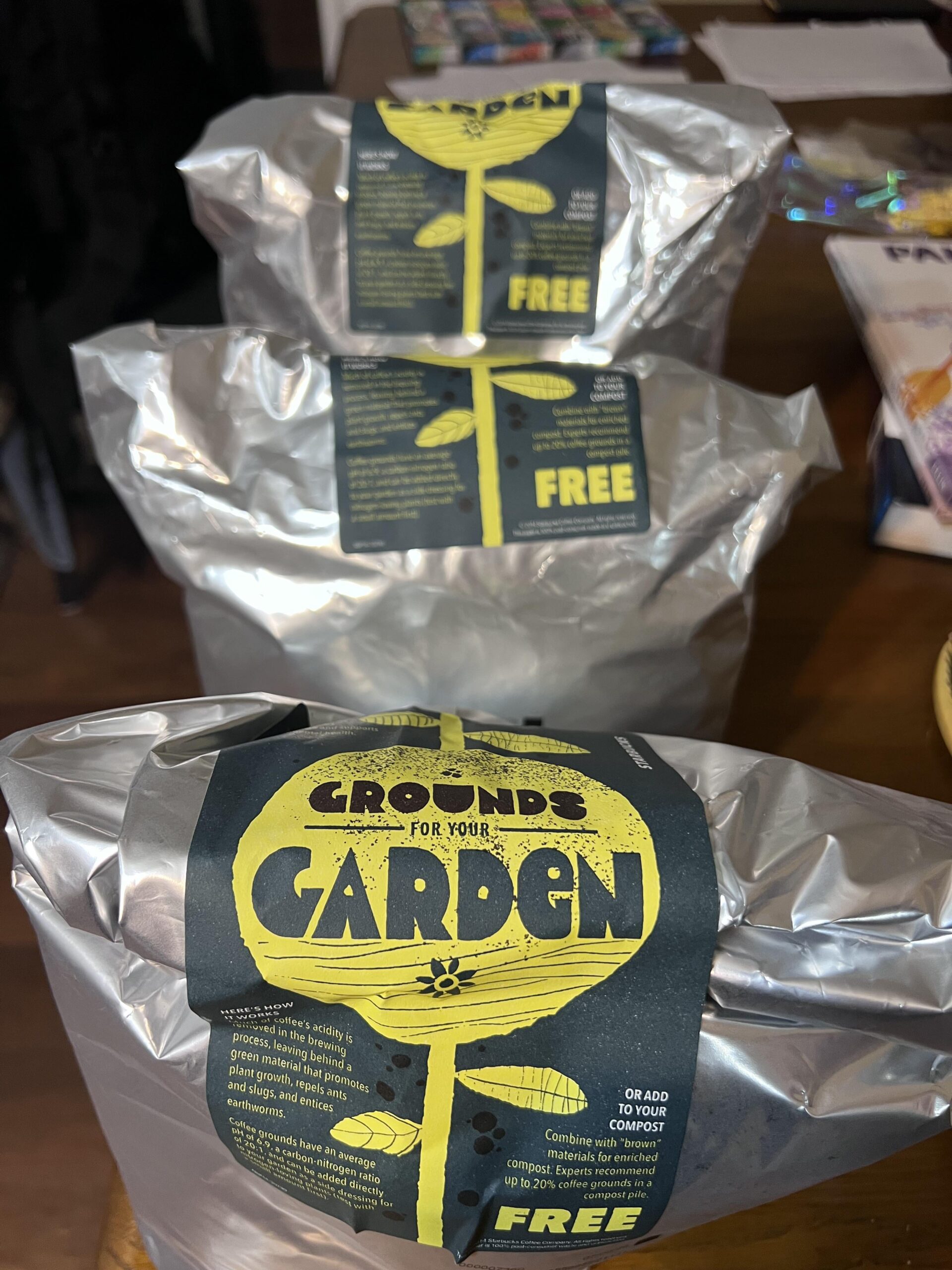 I stopped by Starbucks and asked about getting coffee grounds for my compost. They had a bin where they apparently put in grounds but there was no sign and it was empty. The lady I spoke to asked me how much I wanted and I said I’ll take whatever you can give me. She had 3 bags and filled them up for me while I waited. Extremely happy with this interaction and their awesome customer service! I added all 3 bags to my compost and will mix it all in this weekend.