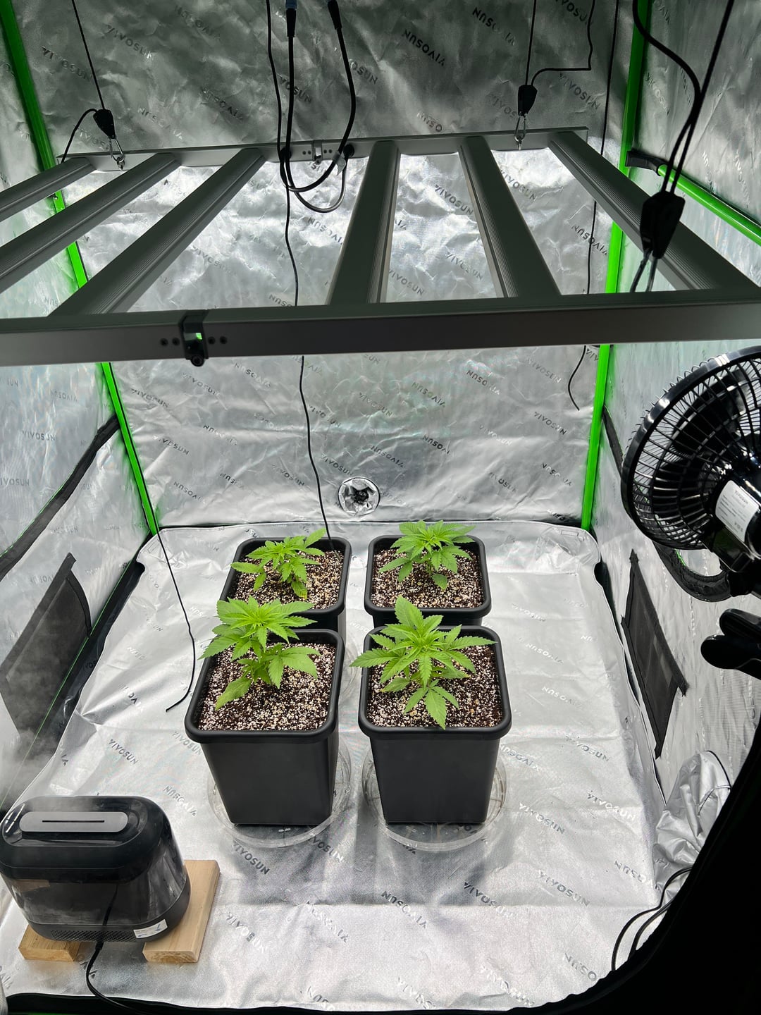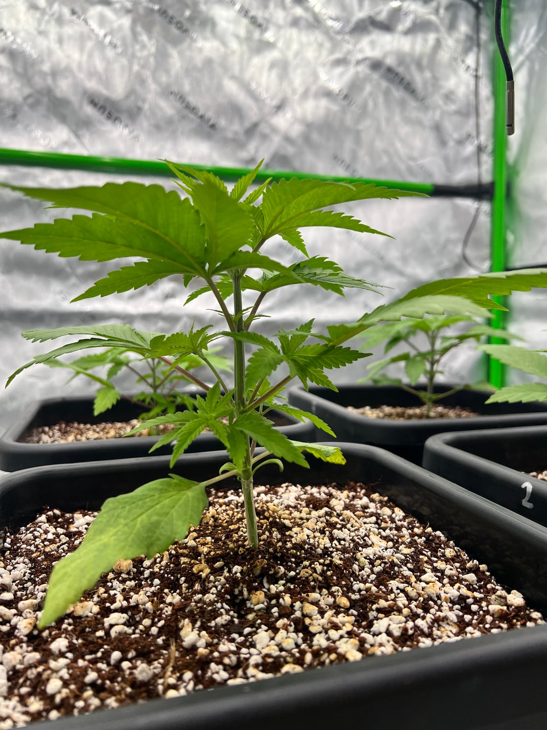 Update nearing the end of week 3 since sprout; bumped up the feed with todays watering since I noticed a little lime-y color. First water since transplant a little over a week ago. Autopots still off, looking to turn on in the next week. PH ~5.8 in coco perlite 7:3. Temps a little low with 500w led light at 50%, 24” away.