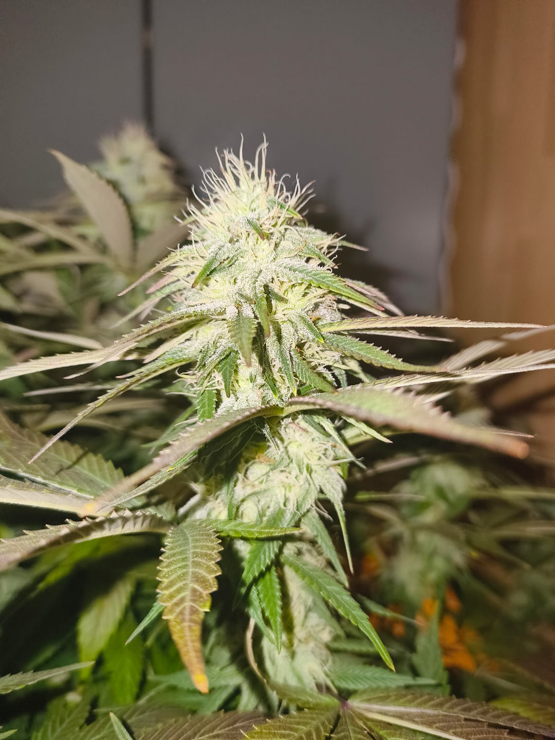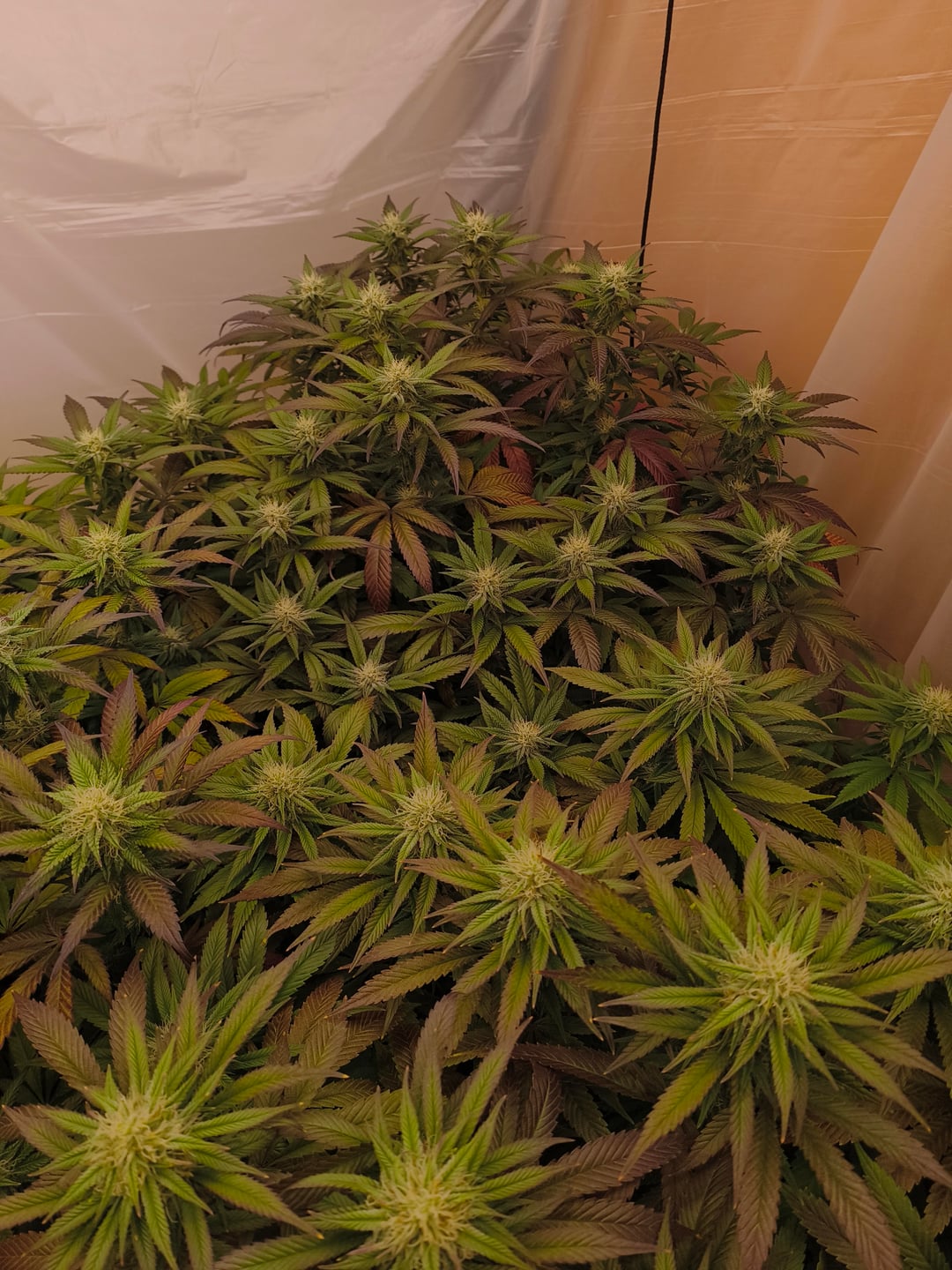 These are my 3 lady's 2 of them are Fem. LSD seeds from Barney's farm 1 is a fem. Gorilla x zkittelz also Barney farm. They were in veg for 100 days and had 3 toppings to reach my desired 25-30 tops per plant. The purple fade already reached the sugar leaves. What do you think About my progress so far?