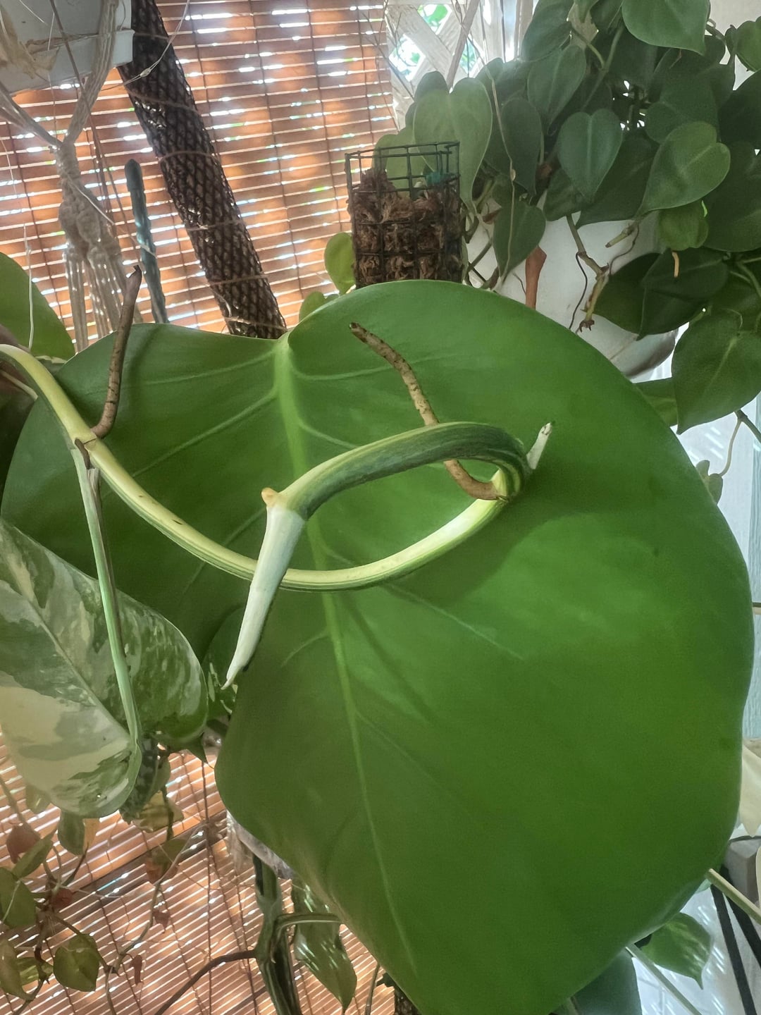 Once the top out grow or detach from the moss pole the plant reverts back quickly to vining mode and some time don’t even push out new leaves.