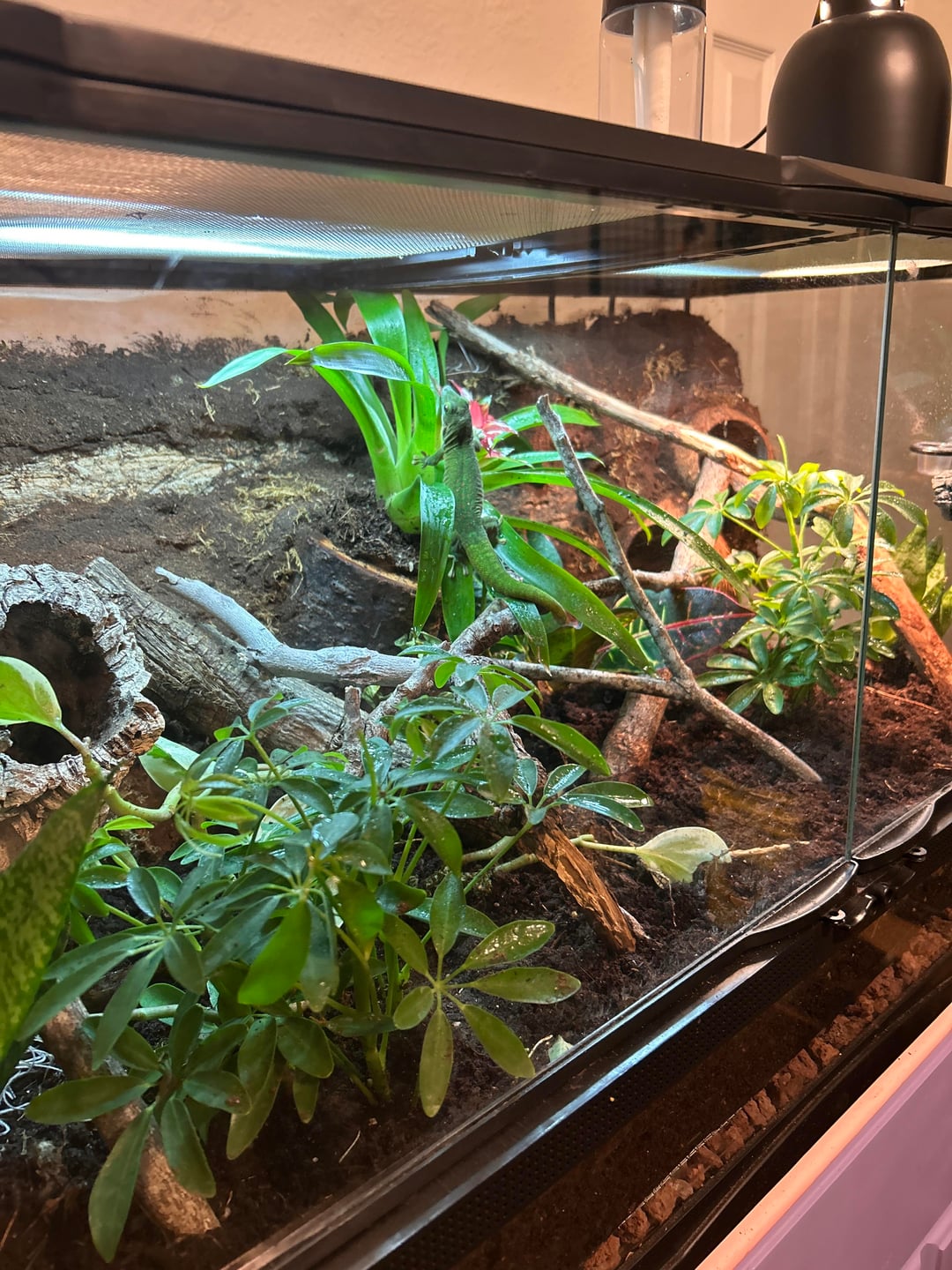 After having crisis after crisis and with everyones help here I finally finished my first vivarium! If you look closely you can also see my guy in there ☺️