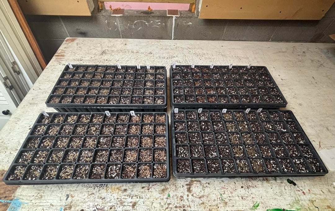 We've gotten a lot more efficient at this, but this took two people about 8 hours from start to finish. Again, I'm using 5" deep Sure Roots plug trays with Pro Mix BX Mycorrhizae soil (not the one with a fungicide). I'm trying a decent number of new species this year (sourced from Prairie Moon and Prairie Restorations), but most of them we collected from our little property or in the wild (where we had permission).