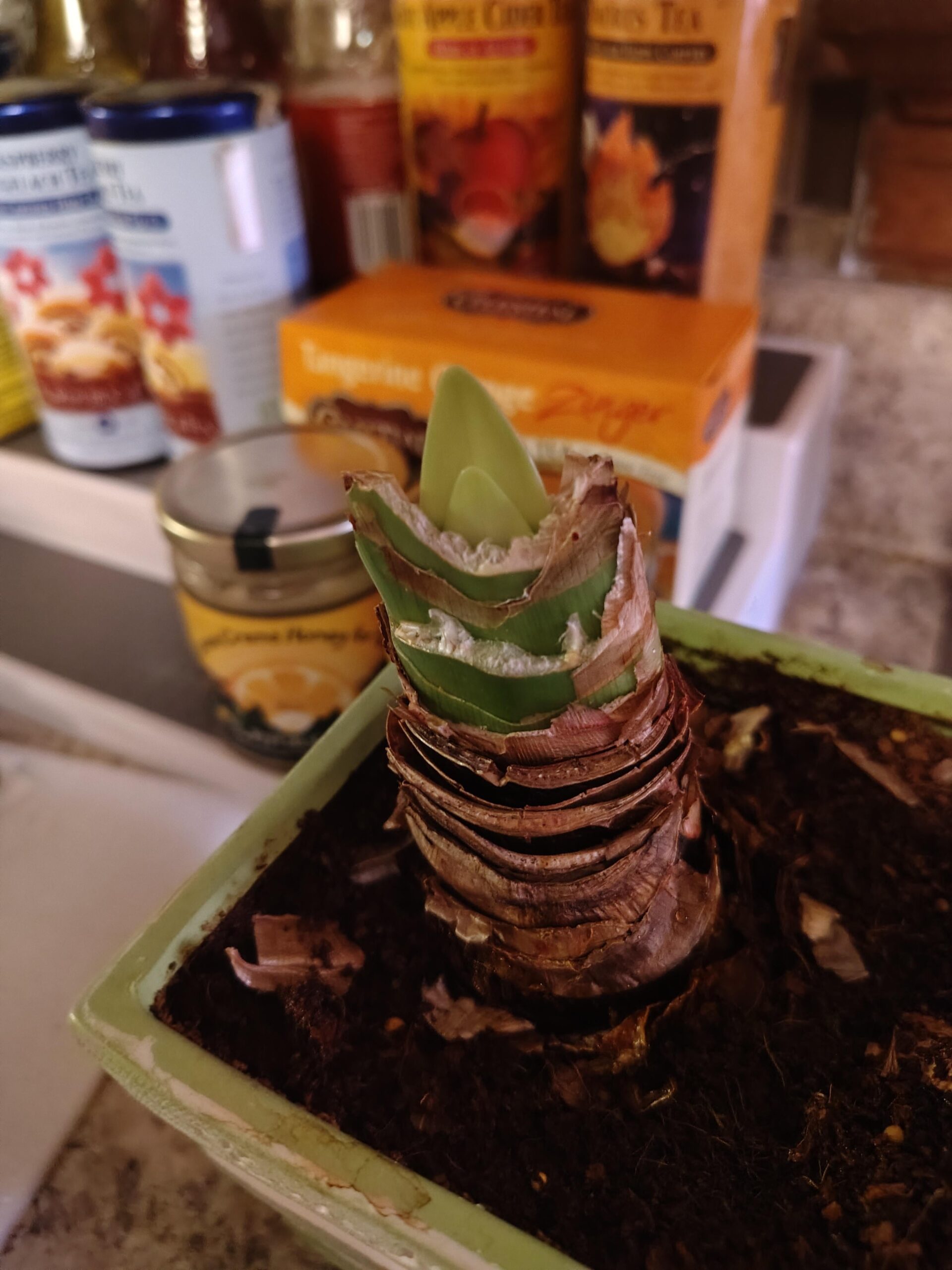 I went on vacation and when I came back, the top was finally cracked open and starting to sprout. Little jerk.