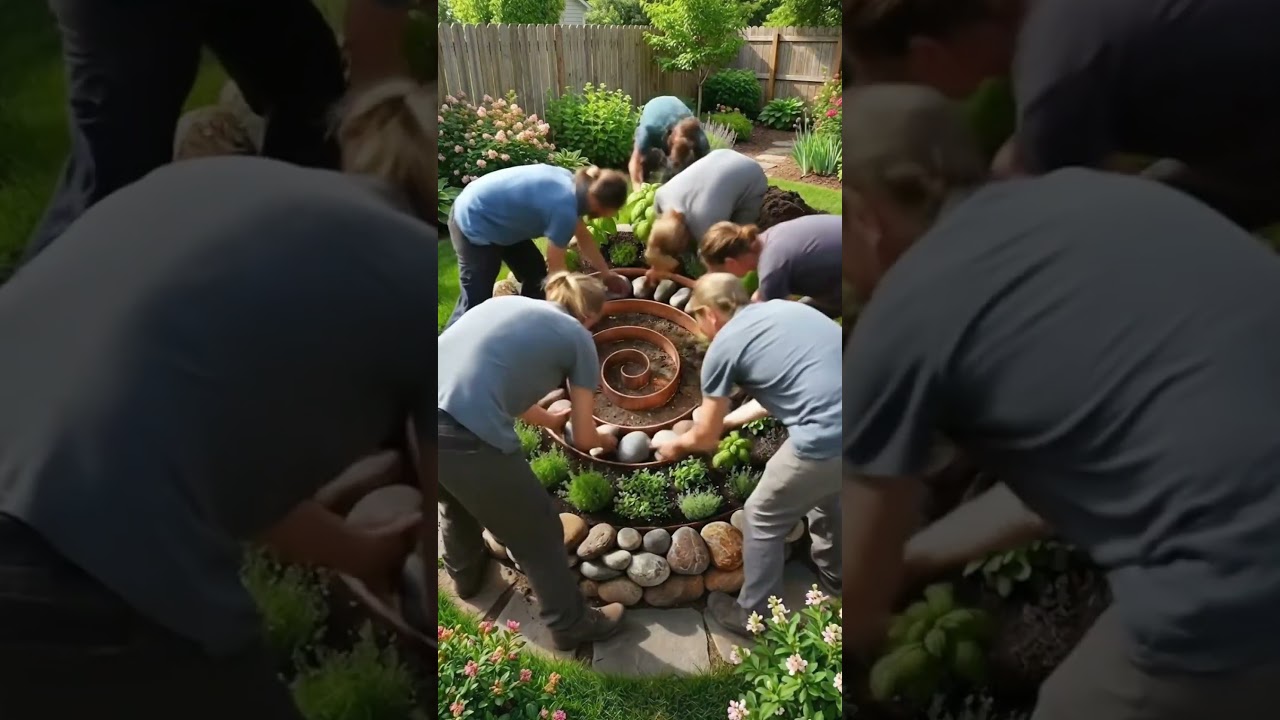 A stone garden spiral designed for growing herbs in a compact and visually striking way. The spiral shape creates different microclimates, allowing herbs like basil, thyme, rosemary, and mint to thrive in one space. A perfect blend of functionality and aesthetic for a modern backyard or small garden