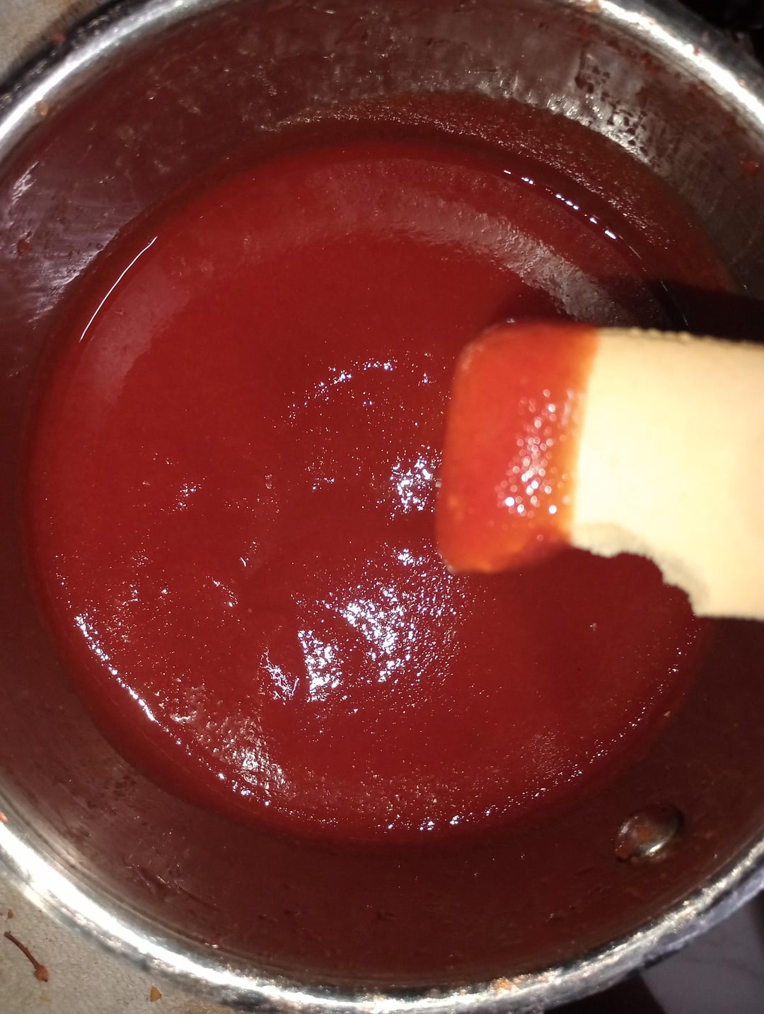 It should be noted that, when fresh, the berries are mildly toxic. You have to either blet, freeze, and/or cook them. I did all three, so by the time I cooked them they were extremely soft and tender, almost mush. The skin is kinda tough and bitter, so I strained them out. I also collected all the seeds I could to see if I can get some to grow before cooking them. Only the biggest berries had seeds, strangely, and only one per berry. Only about a third of the berries seemed to be any good, most were hard, brown, and rotten. None of those ones seemed to be fertile; maybe that's why they went bad?