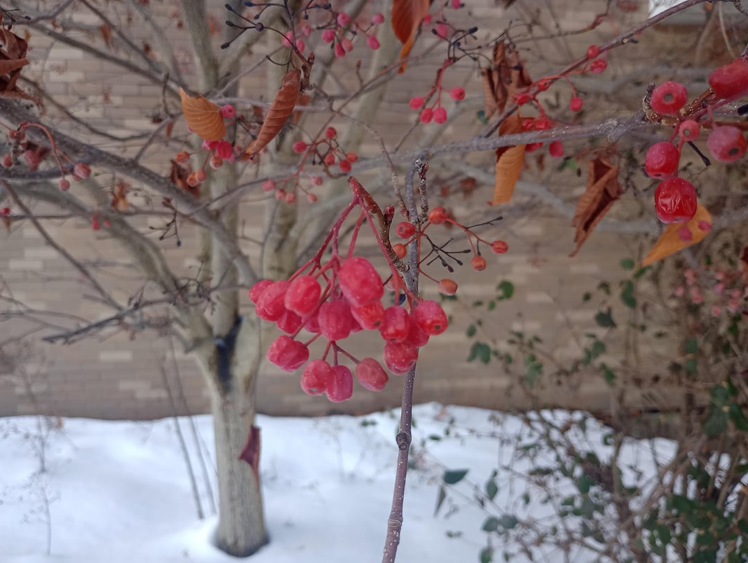 There's only one tree I know about, I plan on going back and getting the rest of the berries this Tuesday when I go to PT. Birds don't seem to be eating them, maybe they're too sour or the birds don't recognize them? Or maybe it's too noisy where the tree is? It's non-native, and there's tons of fruit on other bushes this year, so I don't feel too bad taking them